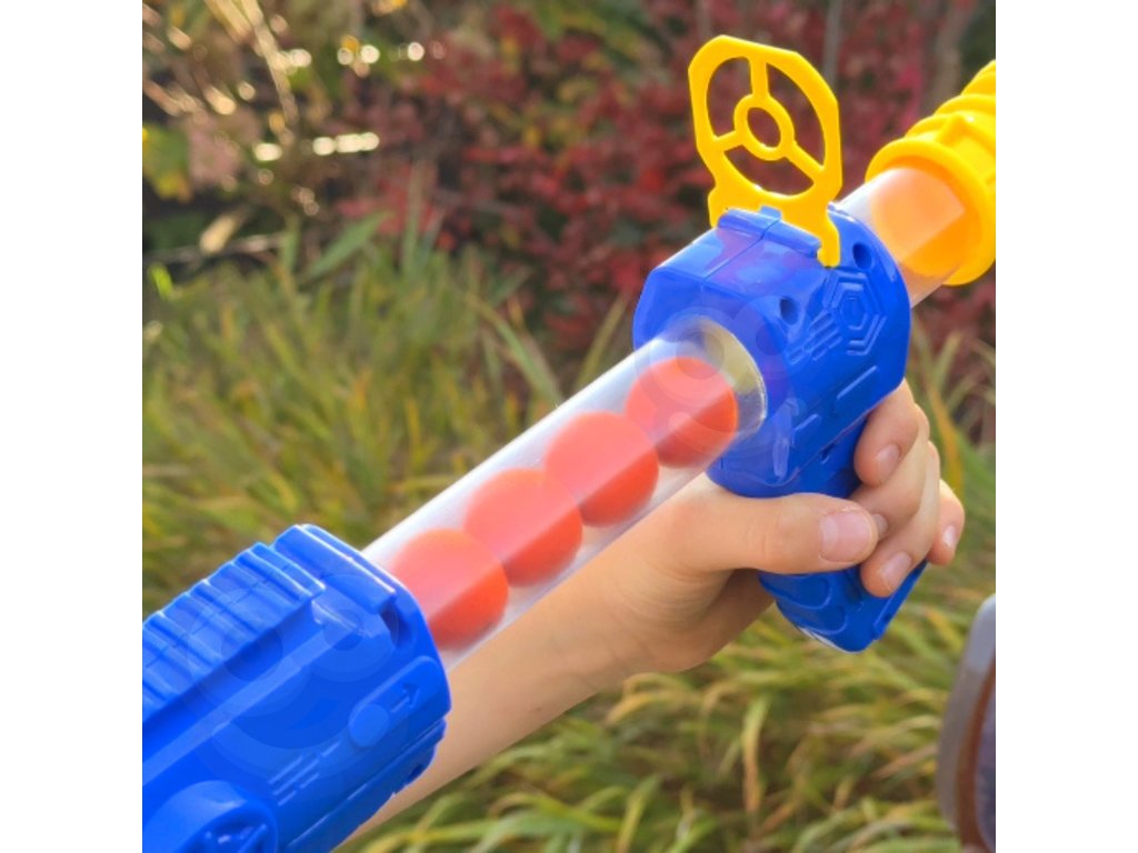 - - pištoľ je poháňaná vzduchom, takže stačí stlačiť pažbu a guľka vystrelí
