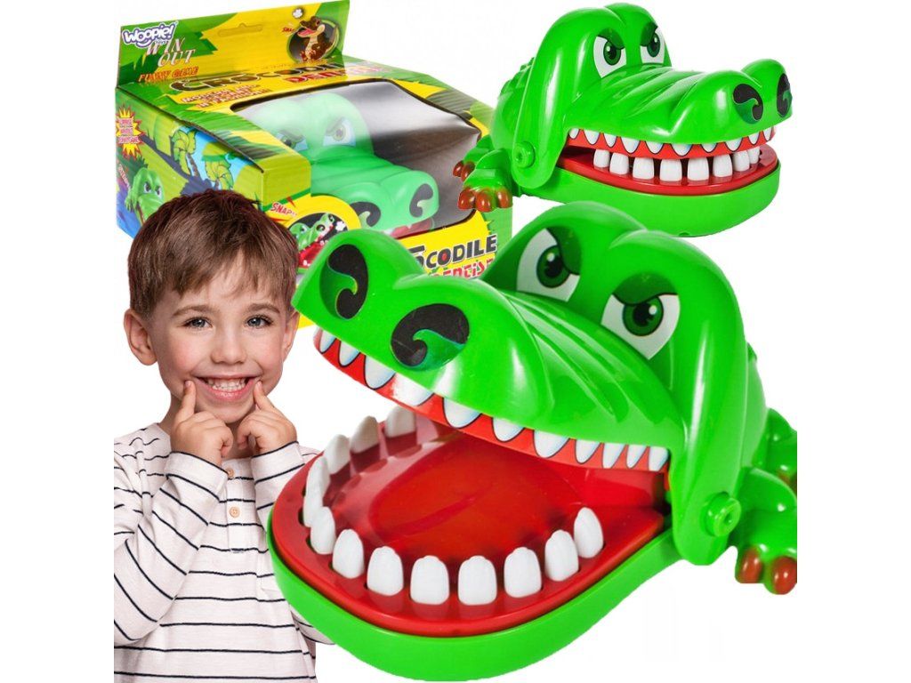 Hryzenie krokodíla od značkyWoopie je zábavná a vzrušujúca arkádová hra, ktorá už roky baví deti aj dospelých. Je to vynikajúca voľba pre celú rodinu, ktorá kombinuje jednoduchosť pravidiel s veľkým množstvom vzrušenia a smiechu. Hra spočíva v tom, že hráte úlohu malého zubára a kontrolujete krokodílovi jeden zub za druhým a stláčate ich jeden po druhom. Musíte si však dávať pozor - medzi zdravými zubami sa skrýva ten, ktorý spôsobí, že krokodíl zatvorí ústa! Napätie sa stupňuje s každým pohybom a reakcie detí sú na nezaplatenie. Je to nielen skvelá zábava, ale aj vzdelávacia hračka, ktorápodporuje vývoj dieťaťa, čo formuje ich reflexy, vnímavosť a schopnosť rýchlo sa rozhodovať. Vďaka jednoduchej mechanike a náhodnosti krokodílej akcie je každá hra iná a deti sa môžu hrať znova a znova bez toho, aby sa nudili. Navyše vďaka farebnému dizajnu a priateľskému vzhľadu krokodíla je hračka pre najmenších okamžite príťažlivá. Hra je tiež vynikajúcim spôsobom, akospoločne strávený čas - počas rodinných večerov, stretnutí s priateľmi alebo narodeninových osláv. Hračka je úplne bezpečná, nemá žiadne ostré hrany ani malé časti a jej pevné spracovanie zaručuje odolnosť aj počas intenzívnej hry. Je to skvelý nápad na darček pre každé dieťa, ktoré miluje smiech, vzrušenie a súťaženie.