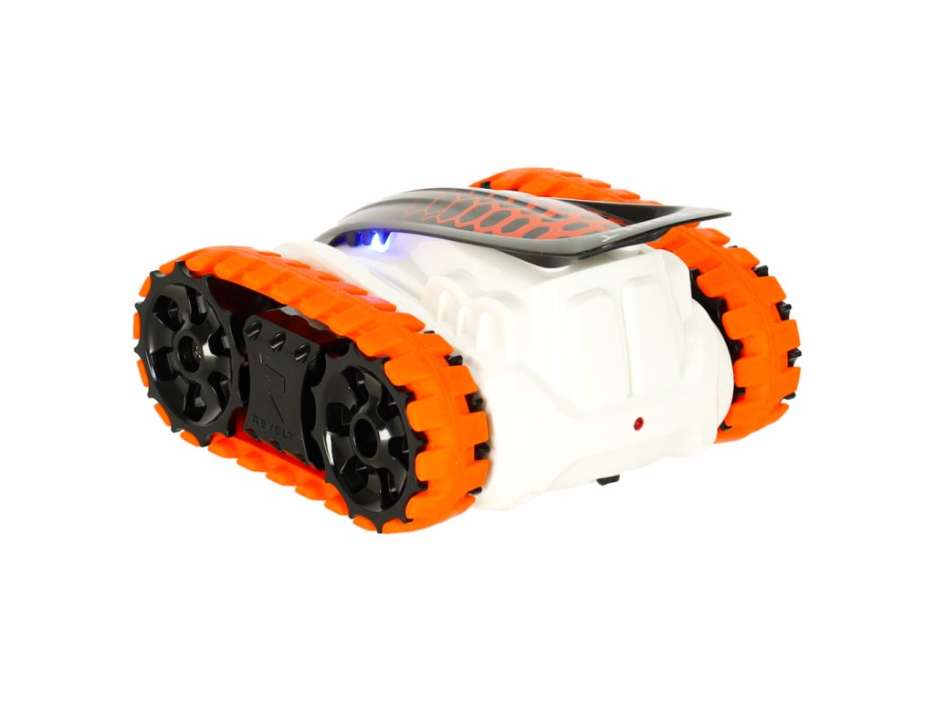 REVOLT BIOTRAX nie je obyčajné vozidlo na diaľkové ovládanie, ale futuristické terénne auto v miniatúrnom vyhotovení! Vďaka robustnej konštrukcii a pásovému podvozku zvládne auto akékoľvek podmienky. Či už je to miestnosť pokrytá kobercom, alebo dvor plný trávy, REVOLT BIOTRAX prejde po akomkoľvek povrchu!