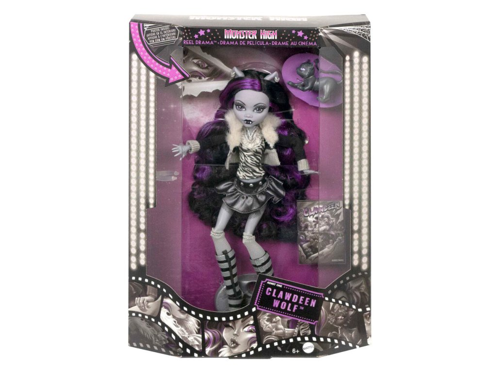 Kolekcia Movie Drama prináša dramatické, filmové spracovanie pôvodných postavičiek Monster High. Bábika Clawdeen Wolf zostáva ako vždy neľútostnou hviezdou, ktorú sprevádza jej domáci miláčik mačička Crescent a dva pútavé grafické filmové plagáty: jeden miniatúrny a jeden v životnej veľkosti. Vďaka pútavému baleniu, ktoré je ideálne pre túto strašidelnú kapsulovú kolekciu, bábika Clawdeen Wolf ešte nikdy nevyzerala tak desivo úžasne. Bábika je plne kĺbová. Bábika nemôže stáť na vlastných nohách. Farby a dekorácie sa môžu líšiť.