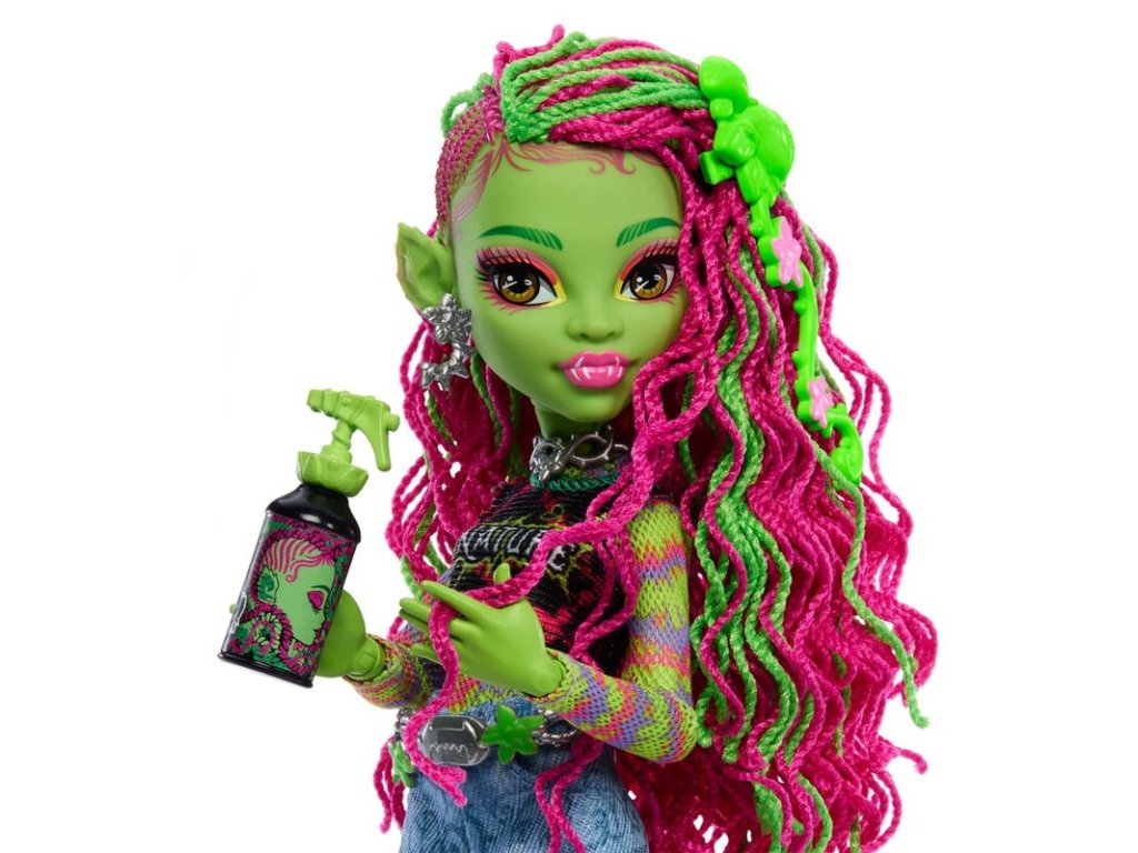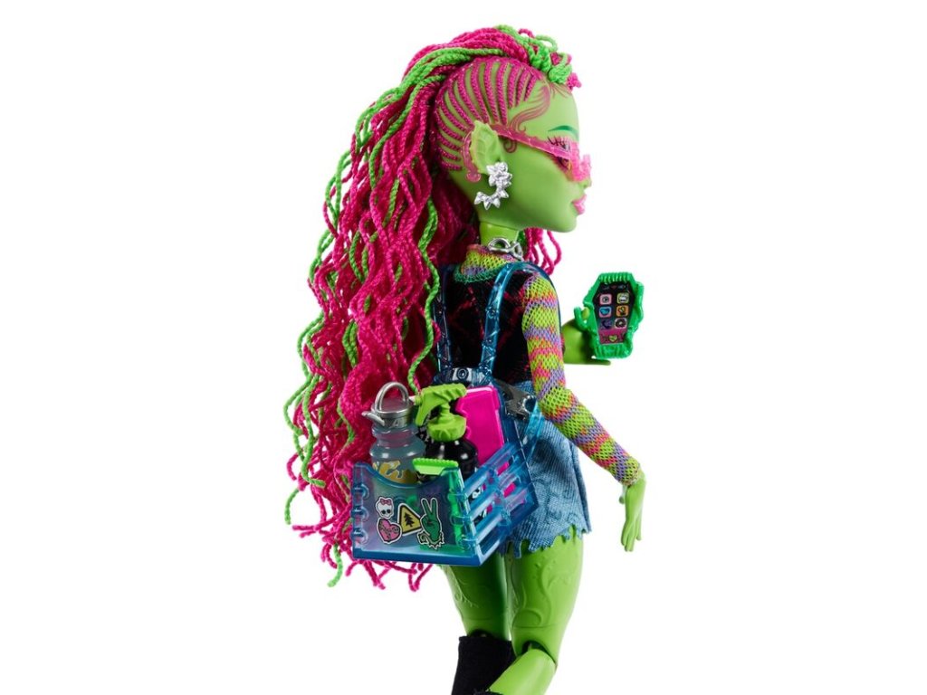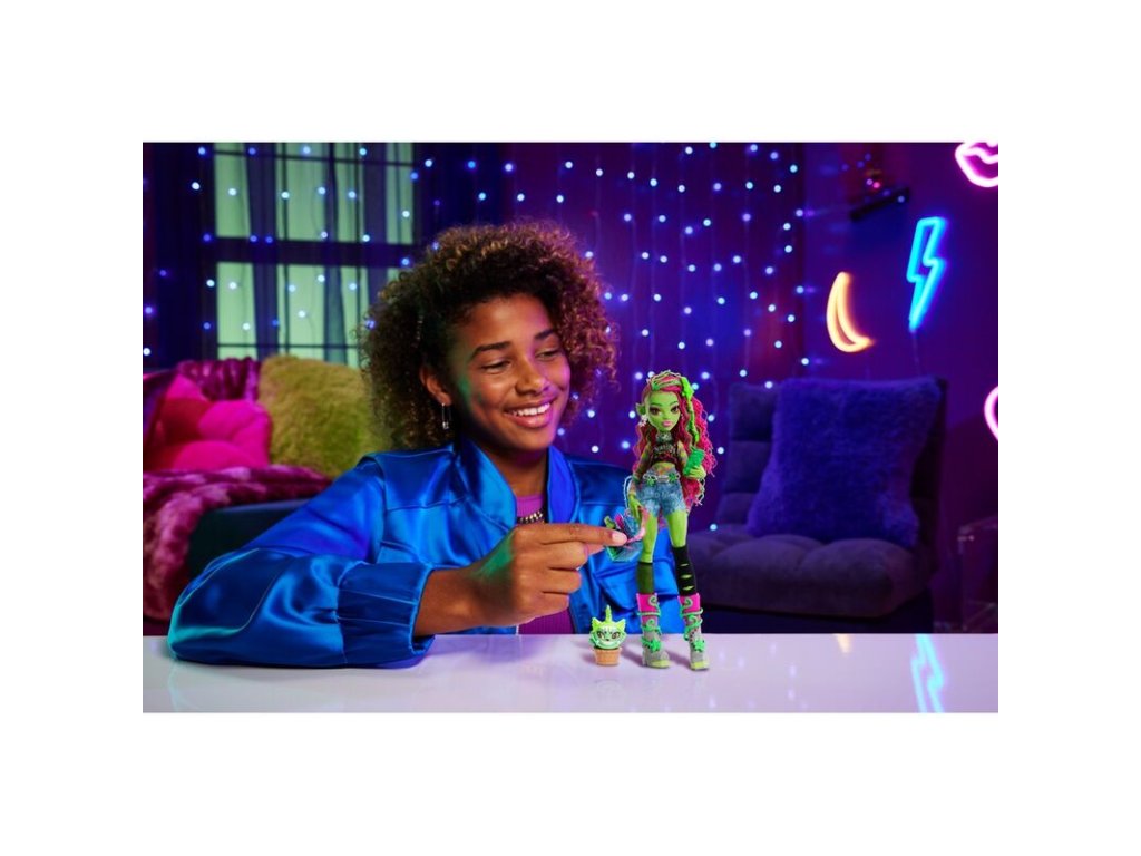 Vek: 4+ rokov. Bábika Monster High Venus McFlytrap s Chewlianom, monštruóznym napoly rastlinným, napoly mačacím zvieratkom, a rôznymi doplnkami vrátane batohu, denníka, jedla a pitia a ďalších. Bábika je plne kĺbová. Bábika nemôže stáť samostatne. Farby a dekorácie sa môžu líšiť. Bábika Monster High Venus McFlytrap rozkvitla do neuveriteľného, čeľuste vyrážajúceho štýlu, vrátane množstva doplnkov na strašidelné rozprávanie a desivú zábavu!