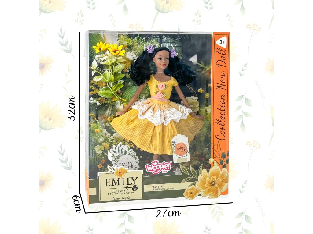 Preskúmajte stránkubábika Emi - elegantná hrdinka sKlasická módna kolekcia, ktorá zaujme svojím šarmom a zmyslom pre detail! Jejžlté šaty s čipkou a ružami, lesklé topánky a krásne čierne vlasy ju robia skutočnou dámou. Nie je to len hračka, ale inšpirácia na vytváranie vlastných príbehov a hranie sa vo svete módy. Vďaka svojmu elegantnému baleniu je Emi tiež ideálnym nápadom na darček pre dievčatko v každom veku. S touto bábikou sa každá chvíľa premení na očarujúcu, kreatívnu zábavu!