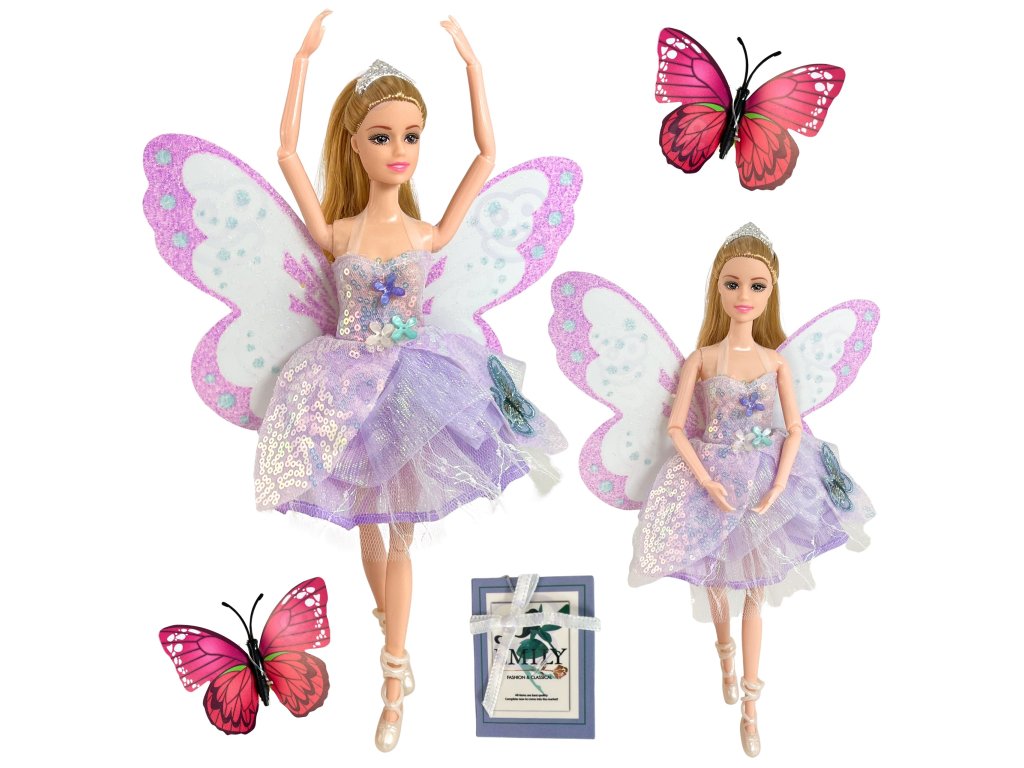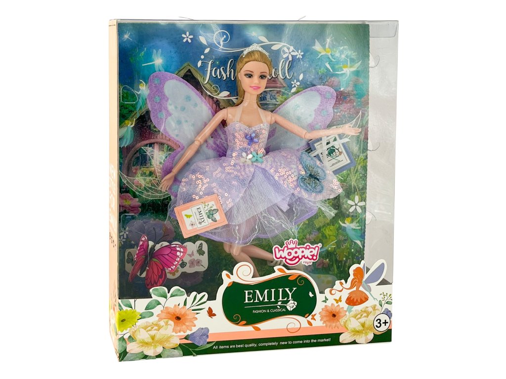 Ponorte sa do sveta kúziel a predstavivosti s krásnou bábikouEmi - motýlia víla! Jej jemné fialové šaty s trblietavými ozdobami a trblietavými krídlami urobia z každej hry čarovné dobrodružstvo. Táto bábika je ideálna pre malé milovníčky víl a inšpiruje k rozprávkovým príbehom plným dobra a priateľstva. Vďaka elegantnému baleniu je ideálna aj ako darček k narodeninám alebo Vianociam.