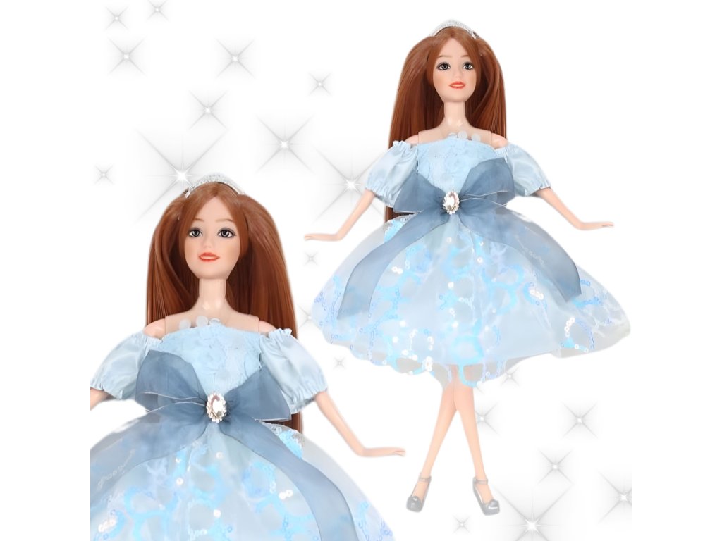 Bábika Emi v modrých šatách s ornamentmi je neuveriteľne elegantná hračka, ktorá vaše dieťa uvedie do čarovného sveta módy, štýlu a kreatívnej hry. Táto krásna bábika s dlhými hnedými vlasmi, oblečená v trblietavých modrých šatách s jemným tylom a mašľou, zaujme svojím šarmom a zmyslom pre detail. Očarujúca tvár bábiky, štýlové doplnky a kvalitné spracovanie urobia z bábiky Emi obľúbenú spoločníčku pre každodennú hru každého dievčatka. Súprava je zabalená v estetickej krabici, ktorá bude ideálna ako darček. Je to ideálna voľba pre každé dieťa, ktoré miluje krásne bábiky a sníva o módnych hrách. S bábikou Emi sa každá chvíľa premení na čarovné dobrodružstvo plné radosti a úsmevov!