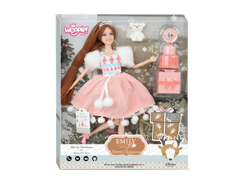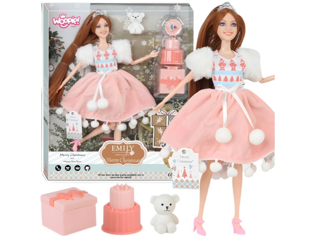 Bábika Emi s medvedíkom a zimnými šatami od značkyWoopie je jedinečná hračka, ktorá prenesie každé dieťa do čarovného sveta módy a snov. Krásna bábika s dlhými hnedými vlasmi s korunkou na hlave, oblečená v zimných šatách s bambuľkami v huňatých rukávoch poteší každú malú milovníčku štýlu. Súprava obsahuje aj rozkošného medvedíka - verného kamaráta na hranie - a doplnky: darček, tortu a tanier s kúskom koláča. Oblečenie a doplnky sú v ružovej a bielej farbe, Hračka sa vyznačuje vysokou kvalitou spracovania, moderným dizajnom a množstvom detailov, vďaka ktorým je hra ešte realistickejšia a pútavejšia. Súprava s bábikou Emilkou je nielen krásnou dekoráciou do izby, ale predovšetkým zdrojom radosti, tvorivosti a rozvoja vášho dieťaťa. Vďaka nej si vaše dieťatko môže vytvárať vlastné príbehy, hrať sa na módnu prehliadku alebo oslavovať so svojím zvieratkom. Je zárukou dlhých hodín bezstarostnej hry plnej úsmevu a fantázie!