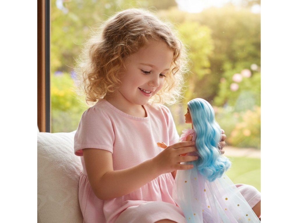 - - Vlasy: dlhý, modrý, ideálny na česanie a styling