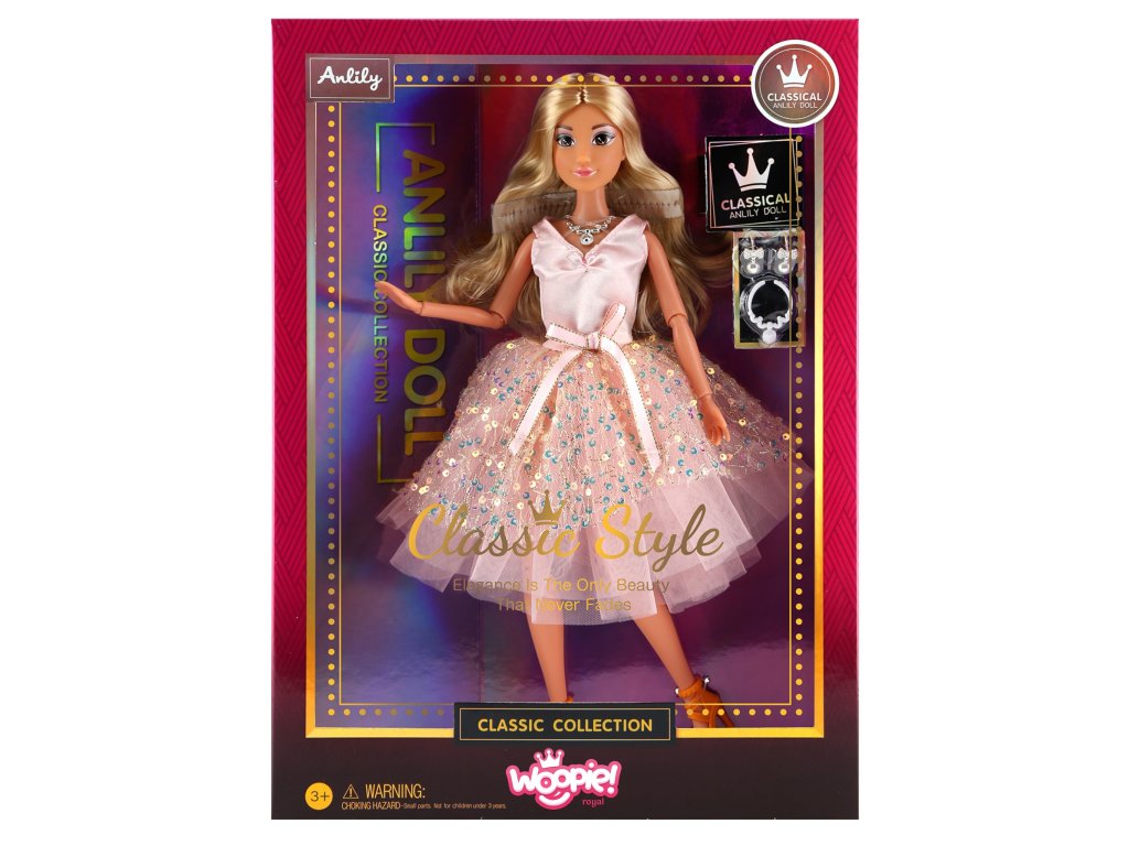 Zoznámte sa s jedinečnou bábikou Lily odWoopie, ktorý poteší každého malého milovníka elegancie a plesových kreácií! Táto rozkošná 30 cm bábika vyzerá fenomenálne v jemných šatách s ružovým leskom, jemným tylom a rozkošnými korálkami. Lilyine dlhé zlaté vlasy po plecia lákajú na nekonečné úpravy a vytváranie rozprávkových účesov, zatiaľ čo módne doplnky - jemný náhrdelník, náušnice a elegantné topánky dotvárajú jej jedinečný imidž.
