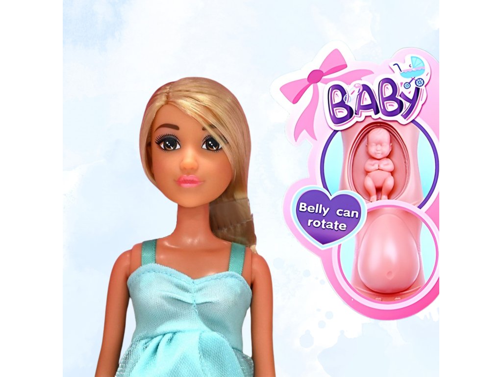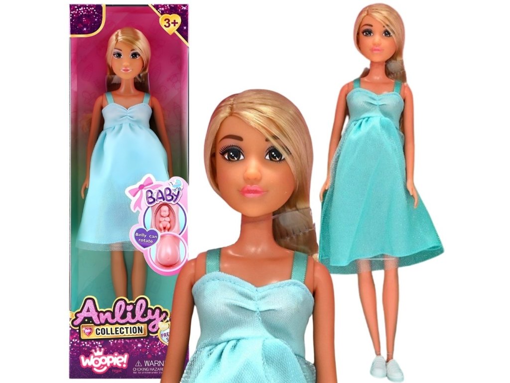 Bábika predstavujúca budúcu matkuod značky Woopie je nevšednou ponukou pre deti, ktoré sa zaujímajú o témy rodiny, materstva a starostlivosti o malé deti. Táto jedinečná bábika bola navrhnutá prerealistické zobrazenie tehotenstva a pôrodu. Jeho najväčším prínosom jeotočné brucho, z ktorého možno dieťa vybrať - je funkcia, ktorá umožňuje dieťaťu simulovať scény pôrodu, starostlivosti o dieťa a rodinné momenty tesne po pôrode. Bábika je oblečená vjemné modré šatyčo mu dodáva elegantný vzhľad. Jehoblond vlasy a jemné črty tváre ľahko vzbudí náklonnosť dieťaťa a stane sa obľúbeným kamarátom na hranie. Vďaka jednoduchému mechanizmu odnímania peckera je hračkajednoduchá manipulácia aj pre menšie deti. Táto bábika je nielen zdrojom veľkej zábavy, ale ajnástroj na podporu emocionálneho rozvoja dieťaťa. Učí empatii, pochopeniu úlohy mamy a pomáha hovoriť o narodení, rodinných väzbách a láske. Je ideálna na samostatnú hru, ako aj na spoločnú hru s rovesníkmi alebo rodičmi.