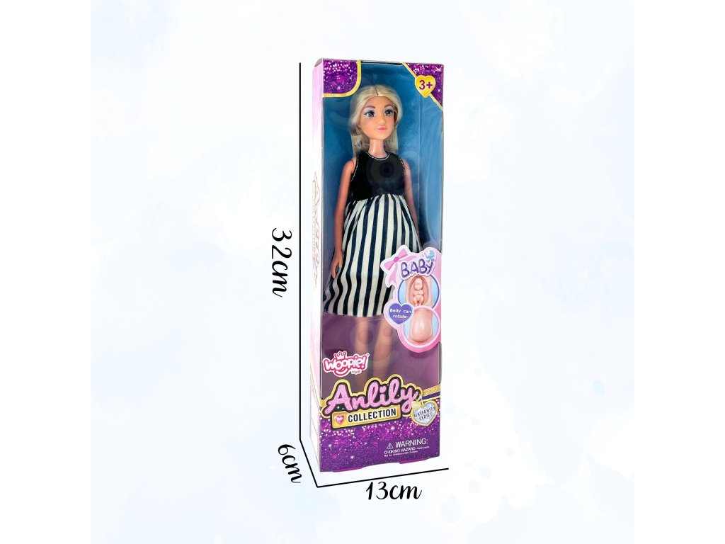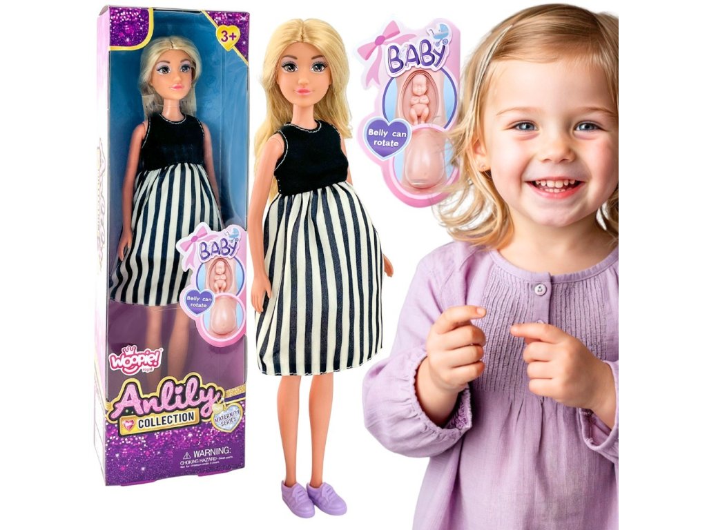 Bábika In tehotenstvo od značky Woopie je nezvyčajnou ponukou pre deti, ktoré milujú hru na dom, rodinu a hranie rolí. Táto starostlivo spracovaná hračka umožňuje zahrať sa na budúcu mamičku a prežiť s ňou dôležitú etapu života - očakávanie bábätka.Realistické brucho kožky pre bábikydojčatáktoré sa dajú odňať, čo dodáva autenticitu a zapája dieťa do emocionálneho hrania rolí. Vďaka funkcii odnímateľného bábätka má dieťa možnosť pozorovať a simulovať proces pôrodu a prvé chvíle starostlivosti o dieťa. Bábika je oblečená velegantné šaty s čiernymi a bielymi pruhmičo zvýrazňuje jej módny vzhľad, a jemné, dlhé vlasy sa dajú česať a upravovať. Hračka nielen zabaví, ale ajučí empatii a posilňuje sociálne väzby napodobňovaním každodenných rodinných situácií. Je to ideálna voľba pre deti, ktoré sa rady hrajú na role, vytvárajú scenáre a vyjadrujú emócie hrou. Bábika môže byť tiež skvelým nástrojom na podporu rozhovorov o rodine, láske a starostlivosti, a to doma aj v škôlke.