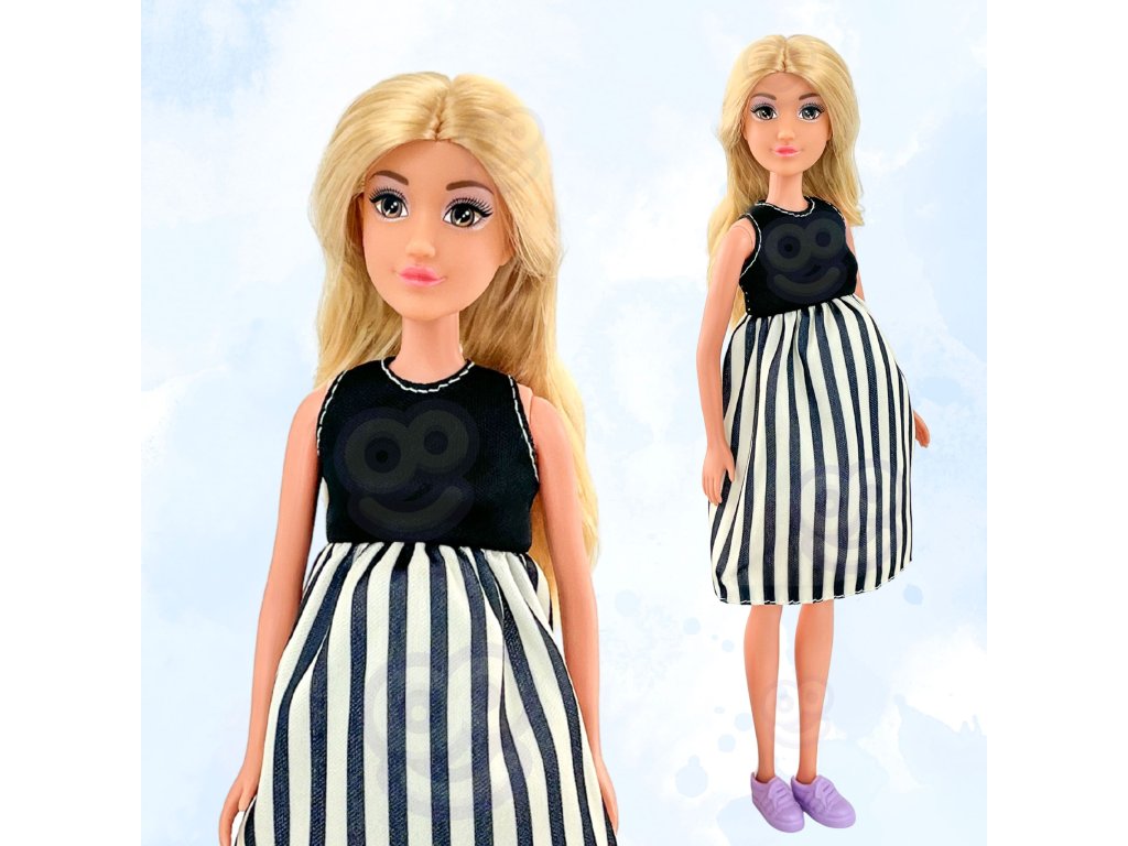 Bábika WOOPIE ROYAL Lily Tehotná čiernobiele pruhované šaty