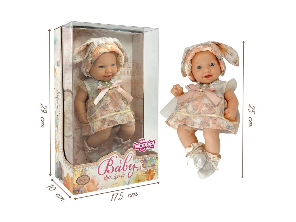 Zoznámte sa so sladkou bábikouktorá ukradne srdce každej malej opatrovateľke! Táto krásna bábika od značkyWOOPIE vyzerá ako skutočné dieťa - má rozkošný úsmev, realistické črty a mäkké oblečenie v pastelových farbách. Vďaka svojej malej veľkosti (24 cm) dokonale padne do malých rúk a môže dieťa sprevádzať všade - doma, na prechádzke alebo na ceste. Hra na starostlivosť o dieťa učí empatii, starostlivosti a rozvíja predstavivosť. Je to perfektný nápad na darček, ktorý spája radosť z hry s učením zodpovednosti!