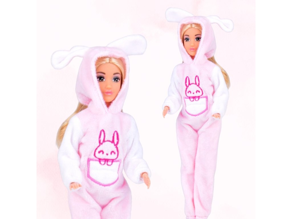 - - bábiky oblečené vzodpovedajúce ružové zajačie obleky