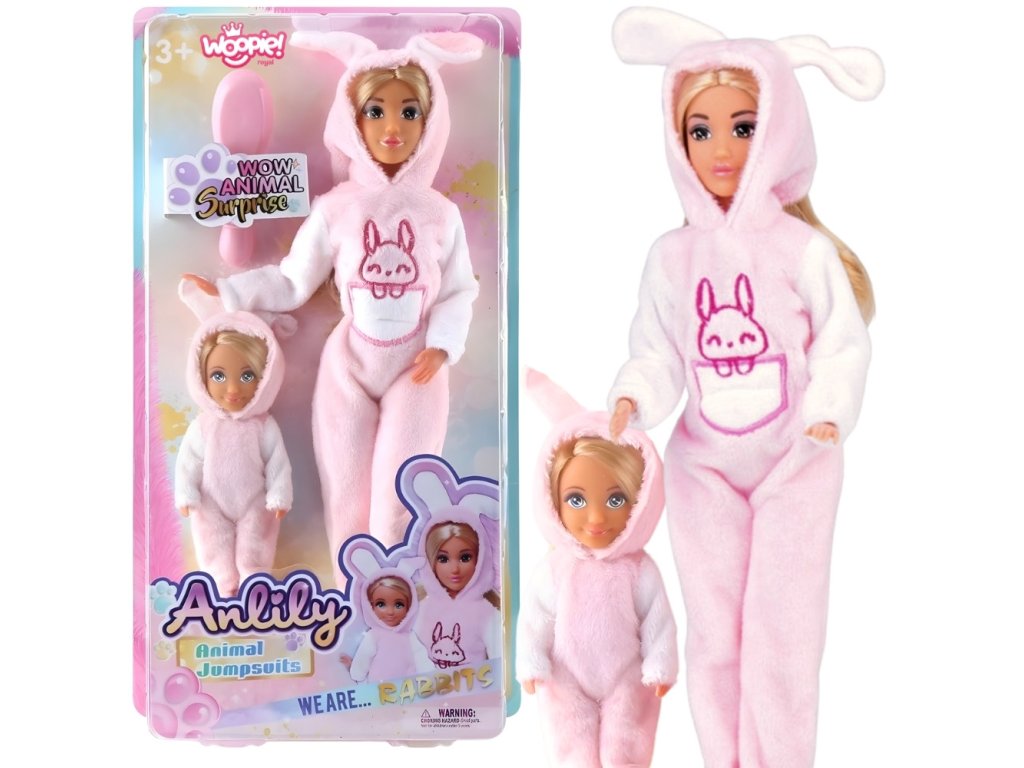 Zoznámte sa s krásnym súboromRužové bábiky v zajačikovom obleku od značkyWoopie, ideálne na tvorivú hru pre deti od 3 rokov! Sada obsahuje dve bábiky -veľké a malé - obaja majú na sebemäkké ružové zajačie obleky s kapucňami s ušami. Na hrudi kombinézy je roztomilý dizajn zajačika. Táto súprava z radu "Zvieracie kombinézy" podporuje zábavu pri hraní rolí a je inšpirovaná trendom zvieracích kombinéz! Bábiky majú pohyblivé ruky a nohy na jednoduché obliekanie a pózovanie. Je to fantastický nápad na darček!