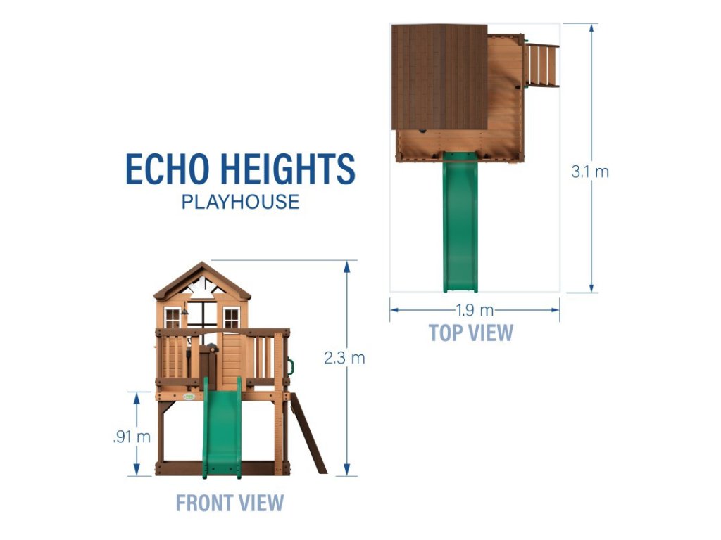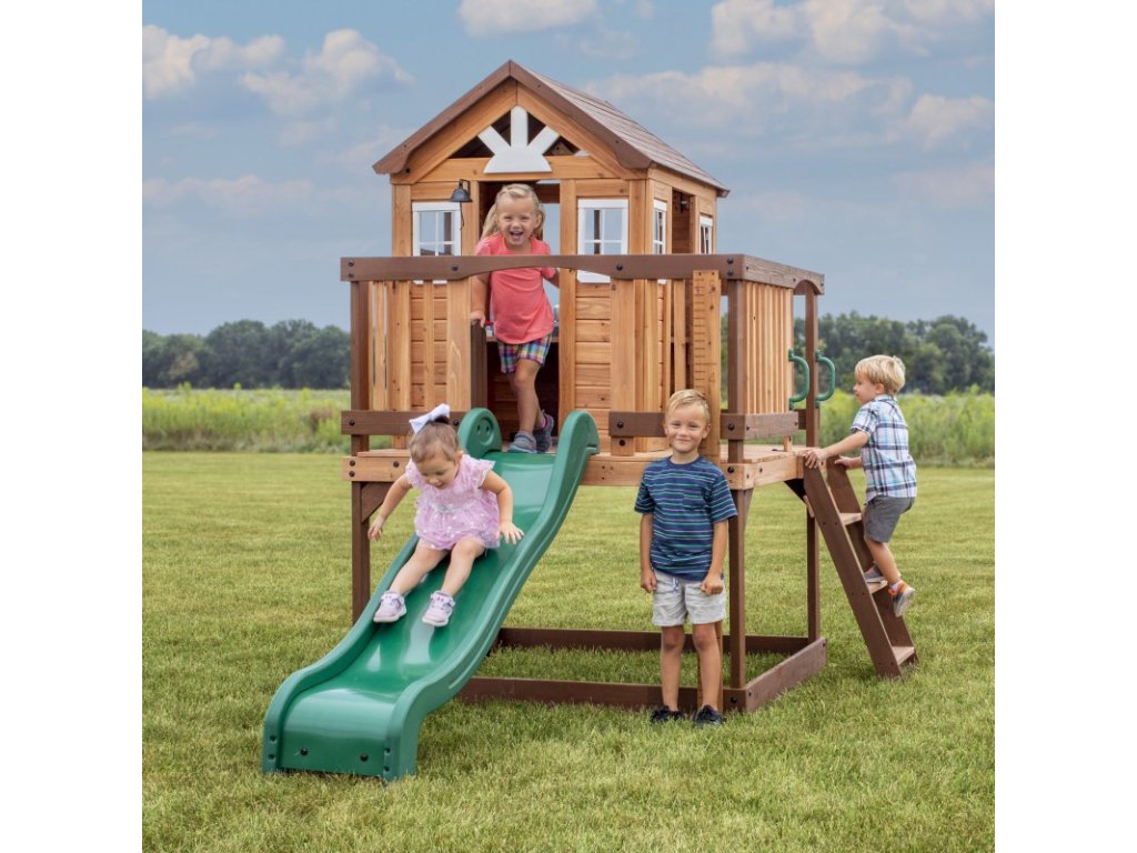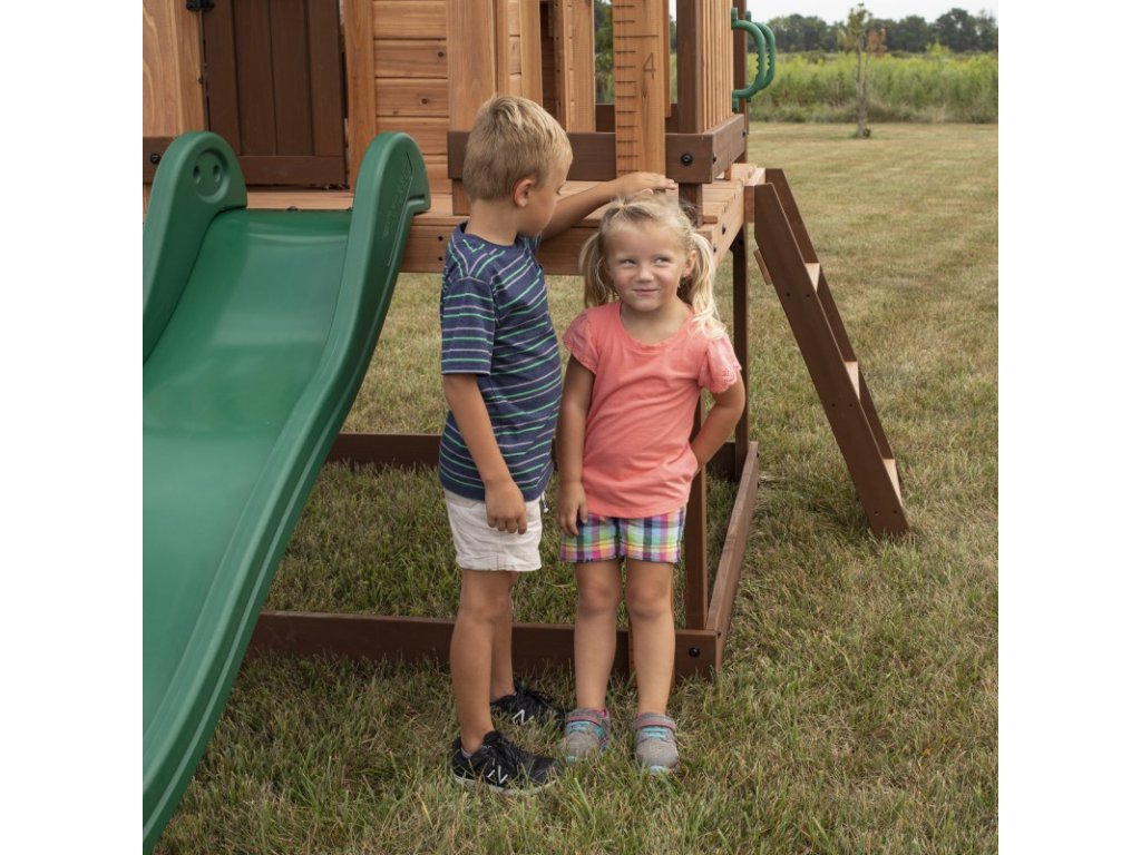 BACKYARD DISCOVERY Echo Heights Drevené detské ihrisko Šmykľavka Domček Kuchyňa