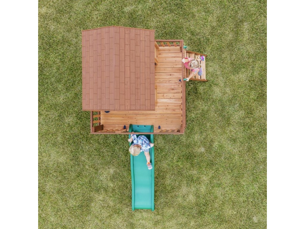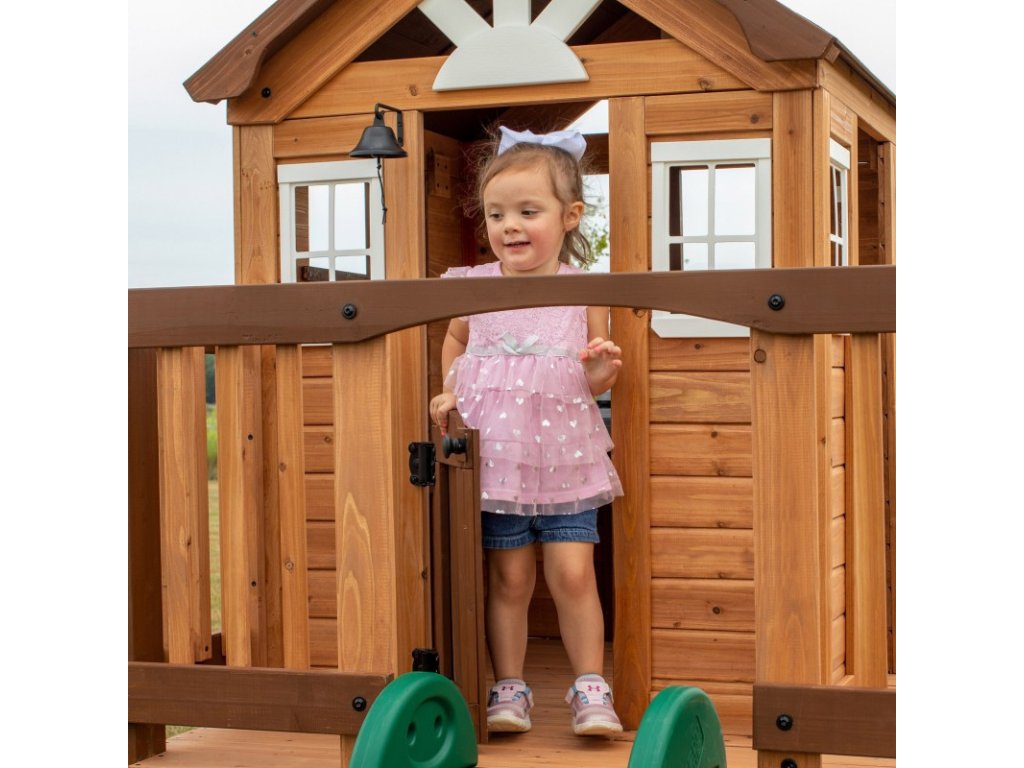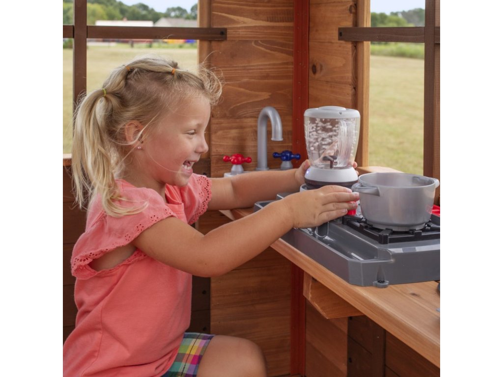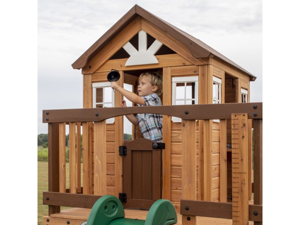 Detské ihrisko Echo Heights spoločnostiObjavovanie na dvore znamená hodiny skvelej zábavy na vlastnom dvore. Tento domček na hranie je vďaka svojej kompaktnej konštrukcii ideálny do každej záhrady. Malé deti si zamilujú hracie prvky, ako je varič, spotrebič na batérie, superrýchla šmykľavka a všetky ostatné doplnky. Funkčné dvojité dvere a veľké otvorené okná znamenajú, že vaše dieťa môže počas hry vidieť všetko okolo seba. Prístupový rebrík so širokými schodíkmi umožňuje ľahký prístup deťom všetkých vekových kategórií. Pomocou priloženého výškomeru môžete sledovať rast dieťaťa a spoločne si vytvárať spomienky. Keď vaše dieťa skončí s hrou v domčeku, môže sa v okamihu zošmyknúť na šmykľavke.