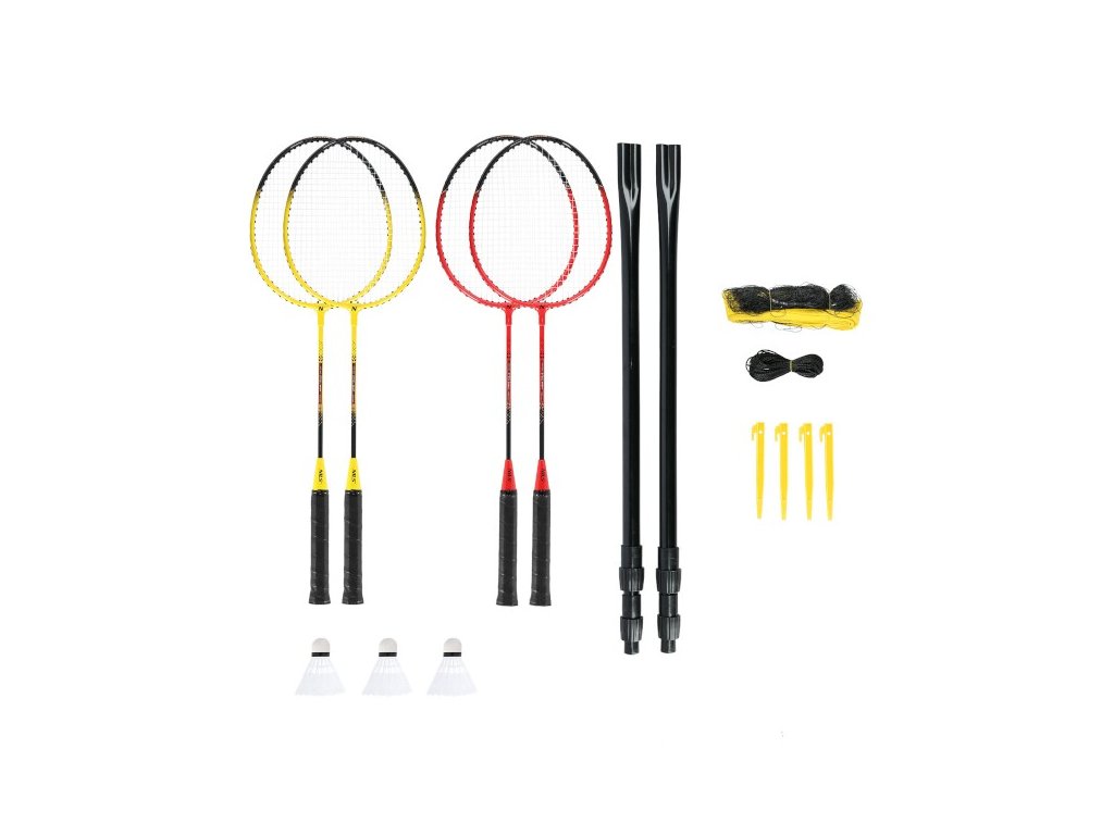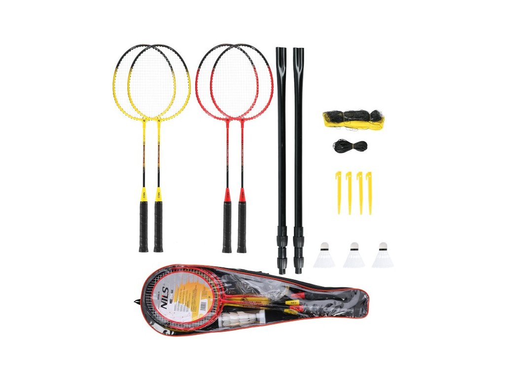 Bedmintonový set NILS NRZ264 obsahuje všetko, čo potrebujete na to, aby ste mohli začať hrať takmer okamžite. V praktickom balení s popruhom cez rameno nájdete 4 rakety, 2 teleskopické stĺpiky, sieť, napínacie šnúry s kolíkom a 3 pálky.