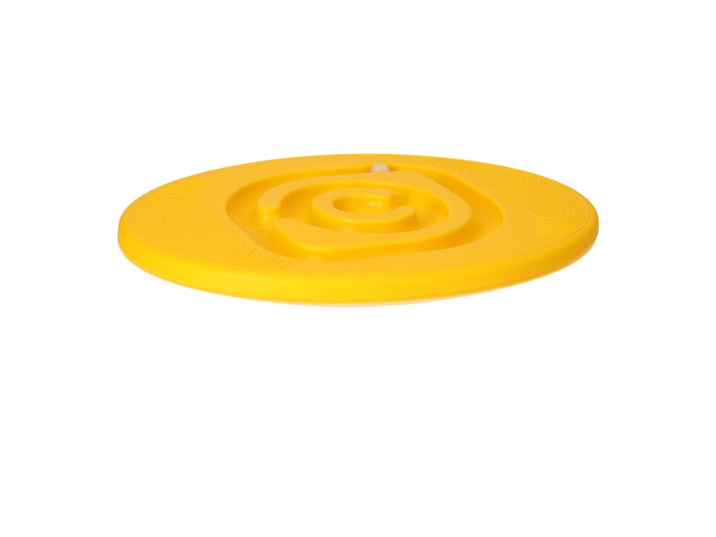 Balančná kladina je vyrobená z odolného plastu v žltej farbe a má maximálnu nosnosť až 90 kg, čo zaručuje dlhotrvajúcu zábavu aj počas tých najintenzívnejších aktivít. Labyrint umiestnený v strede balančnej kladiny je atraktívnym doplnkom, ktorý dieťa ešte viac zaujme. Drevené guľôčky je potrebné nasmerovať do stredu labyrintu vyvažovaním dosky. Ďalšie nerovnosti na povrchu stimulujú zmysel pre hmat a zabezpečujú bezpečnosť tým, že zabraňujú pošmyknutiu.