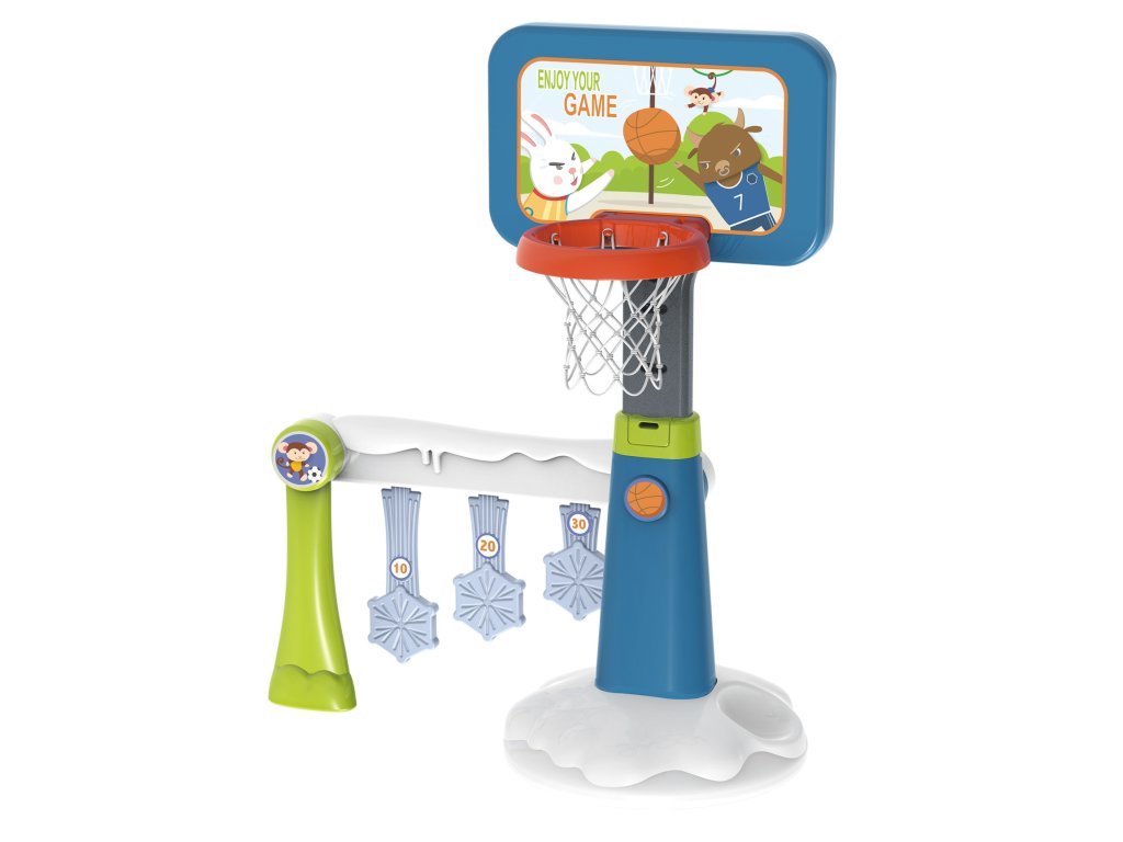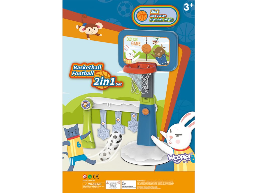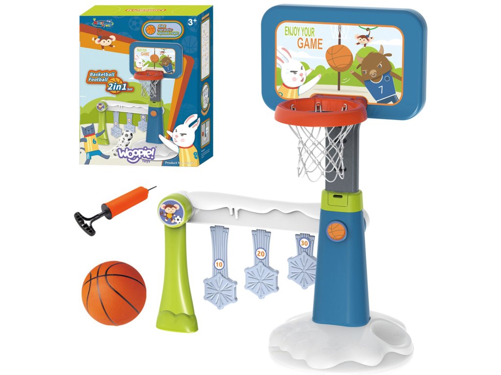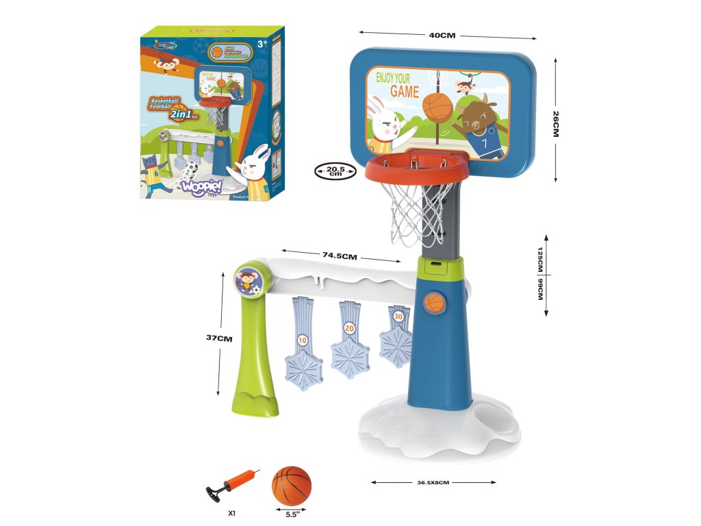 Športová súprava 2 v 1 na basketbal a bránky značkyWoopie je super športová kombinácia pre najmenšie deti! Dieťa si môže kedykoľvek vybrať, čo chce hrať. Dieťa sa môže hrať samo vbasketbal alebo s priateľmi vfutbal - sa nikdy nebude nudiť!Súčasťou bránky je bodovací diskkto získa najviac bodov, vyhráva. Sada určitepodporovaný Vaše dieťa sa môže zúčastňovať na športových aktivitách. Aktívne športovanie zabezpečí vášmu dieťaťu rozvoj tzv.veľké motorické zručnostičo je ideálne pre správny vývoj dieťaťa. Veľkou výhodou je, že výrobok možno používať ajdomov ako amimo - Vaše dieťa sa bude môcť hrať kdekoľvek bez ohľadu na počasie. Basketbalový kôš je vysoký125 cm- ideálne pre najmladších hráčov!