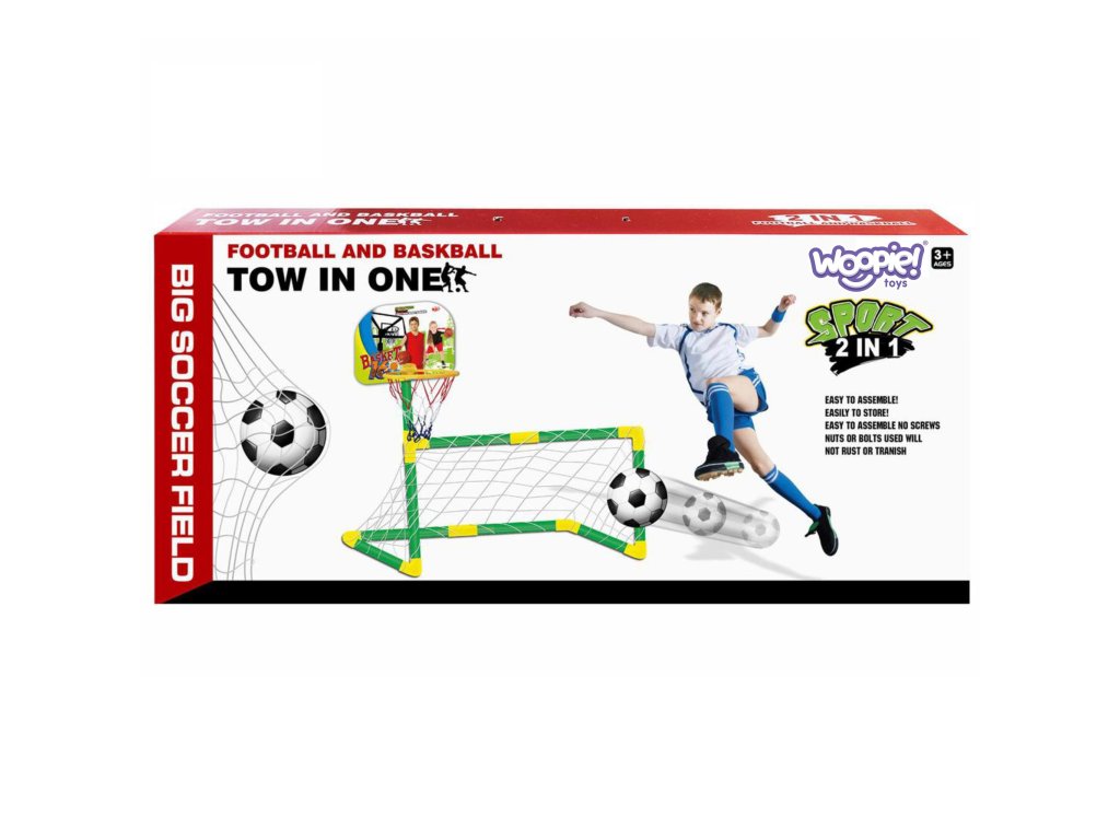 Športová súprava 2 v 1 na basketbal a bránky značkyWoopie je super športová kombinácia pre najmenšie deti! Dieťa si môže vybrať, čomu sa chce v danom čase venovať. Dieťa sa môže hrať samo alebo s kamarátmi vfutbal alebo vbasketbal - sa nikdy nebude nudiť! Sada určitepodporovaný Vaše dieťa sa môže zúčastňovať na športových aktivitách. Aktívne športovanie zabezpečí vášmu dieťaťu rozvoj tzv.veľké motorické zručnostičo je ideálne pre správny vývoj dieťaťa.
