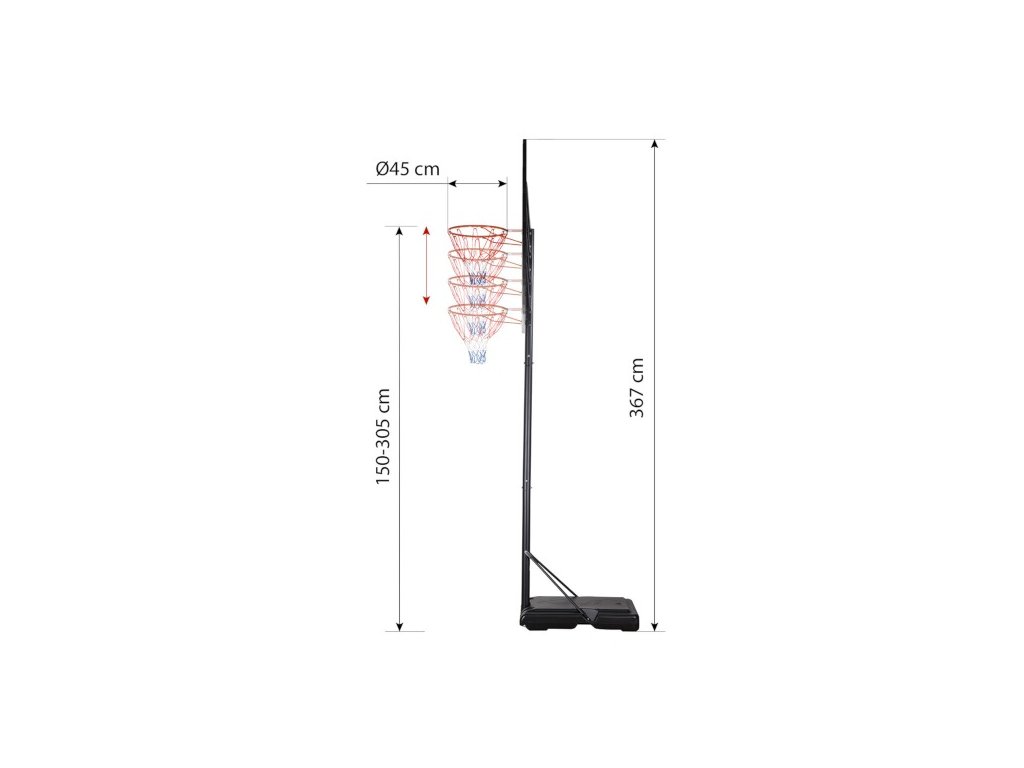 - Výška obruče od zeme: 1,5 - 3,05 m