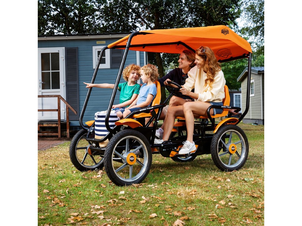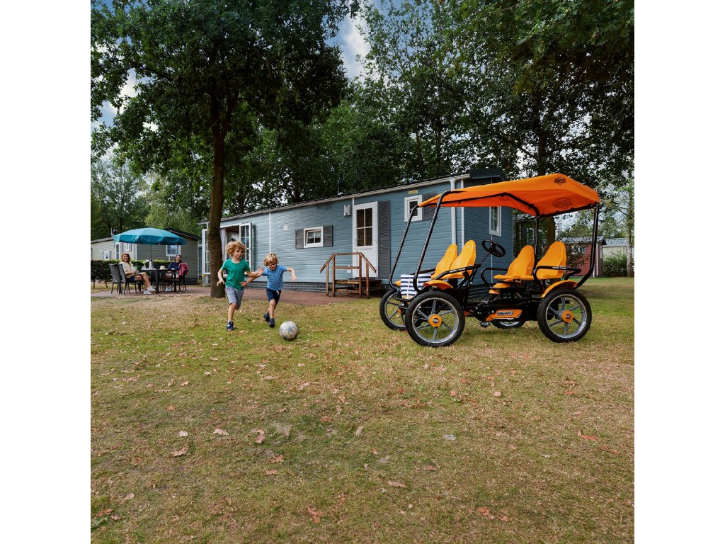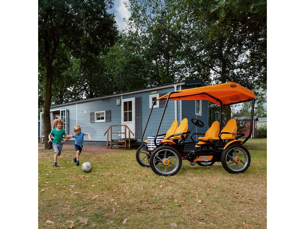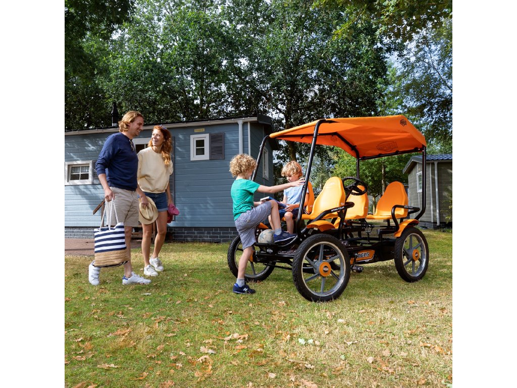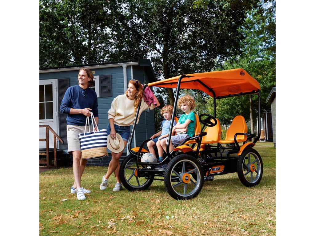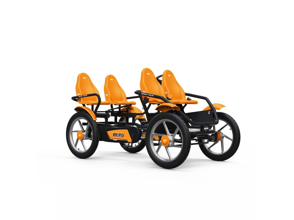 Atrakcia pre každý zábavný park:bERG Gran Tour bike/go-kart! Štvormiestna motokára má ergonomický dizajn, vďaka ktorému je hra s ním úplne bezpečná. Je to skutočná zábavapre malých aj veľkých používateľov. Vozidlo je vhodné pre vysoké zaťaženie. Bol navrhnutý tak, aby bol komfort na najvyššej úrovni. Agilnú motokáru nie je problematické riadiť. Spoľahlivá ručná brzda umožňuje jeho účinné zastavenie.