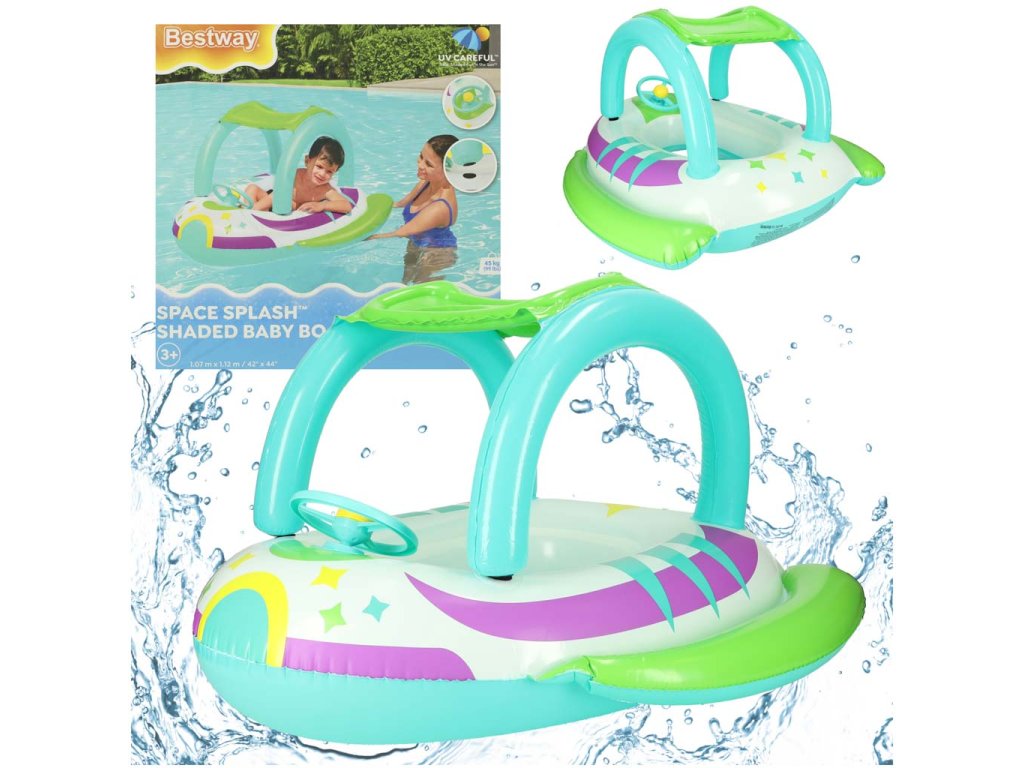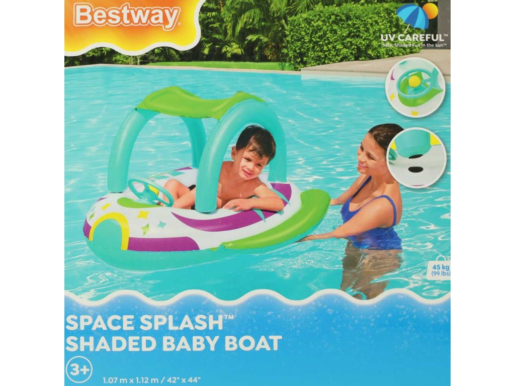 Jedinečný tvar vesmírnej lode upúta pozornosť každého dieťaťa a vďaka nemu sa bude cítiť ako skutočný objaviteľ vesmíru. Pontón je stabilný a bezpečný a nafukovacie dnoposkytuje pohodlné miesto na odpočinok a hru. Ďalším bonusom je strieška, ktorá chráni jemnú pokožku vášho dieťaťa pred slnečnými lúčmi.
