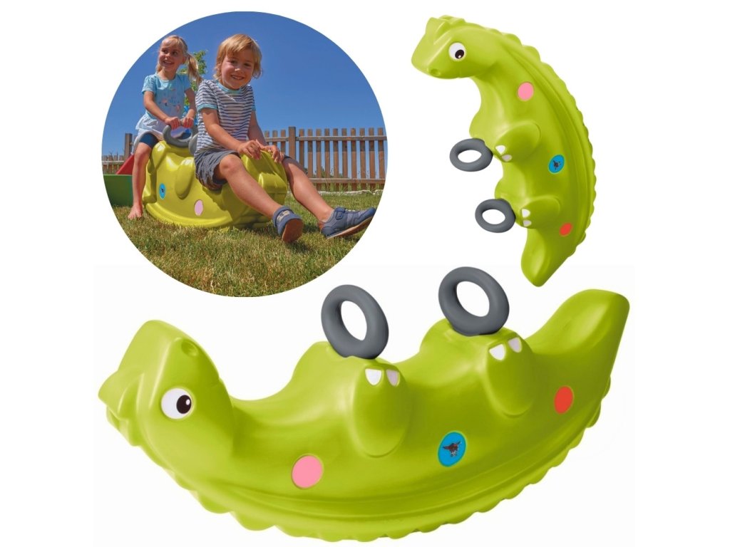 Hojdačka Sammy Dino Rocker bola navrhnutá pre batoľatá od 1 roka. Jejergonomické sedadlá poskytujú pohodlie aj počas dlhších výkyvov. Prostredné sedadlo umožňuje samostatnú hru jedného dieťaťa, zatiaľ čotri miesta priestor na sedenie umožňuje súrodencom alebo priateľom hrať sa spolu.