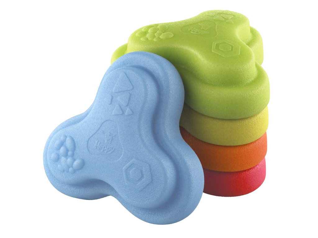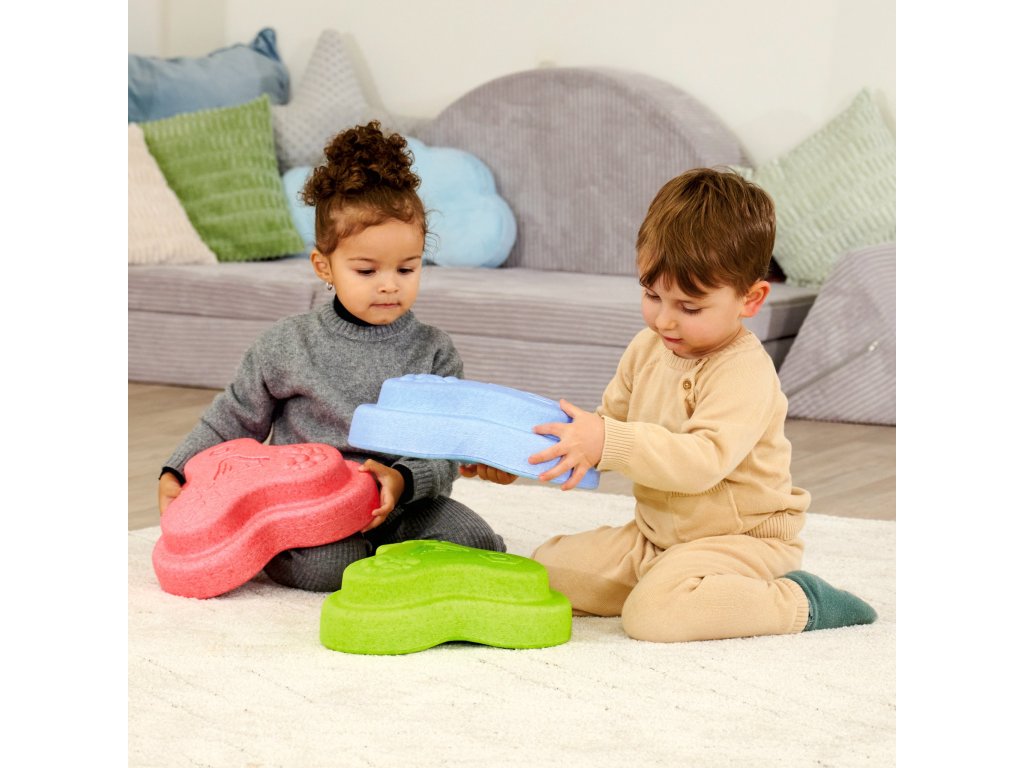 BIG Happy Sensory Stones je sada 5 ľahkých itrvalé kamenektoré poskytujú deťomkreatívna hra irozvoj zmyslov. Vďaka svojej odlišnej štruktúre umožňujú kamenedotyk, rovnováha ibudovať vlastné štruktúry. Vďaka výnimočne nízkej hmotnosti (120 g) a odolnosti sú zábavné aj pre staršie deti a dospelýchmaximálne zaťaženie 120 kg. Kamene stimulujú rozvoj motoriky, vnímania a koordinácie a zároveň podnecujú predstavivosť. Sú vyrobené z ekologického materiálu EPP, ľahko sa čistia a sú recyklovateľné.