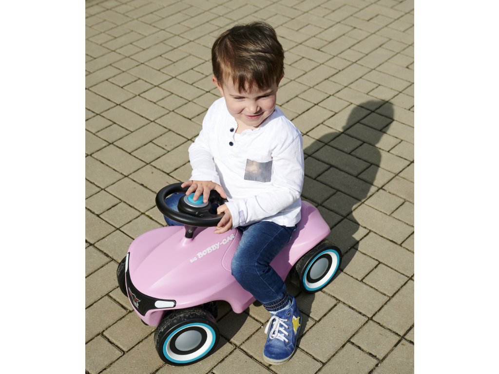 Vlajkový produkt spoločnostiBIG - ergonomický, robustný a atraktívny jazdecVeľké auto Bobby. Jazdítko je určené pre batoľatá, ktoré už urobili svoje prvé kroky. Je skonštruované tak, aby si mohli vyskúšať a rozvíjať ďalšie schopnosti - nastupovanie, vystupovanie, odstrkovanie a riadenie.
