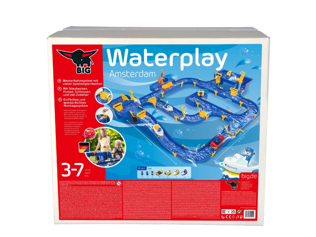 Amsterdamský kanálový systém Waterplay, spája zábavu s potešením z vody. Dieťazalievaním vodou spôsobujepohybktorý pohybuje kanálmi v lode. Prúd vody v kanáli možno dosiahnuť aj uvedením vodného kolesa do pohybu.