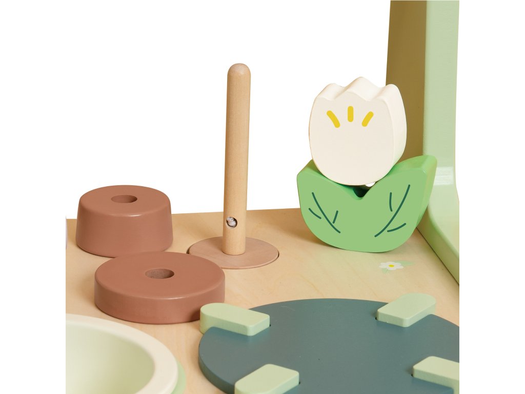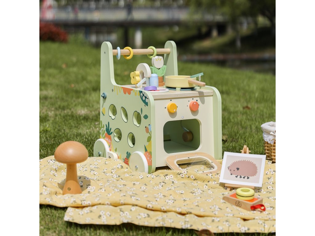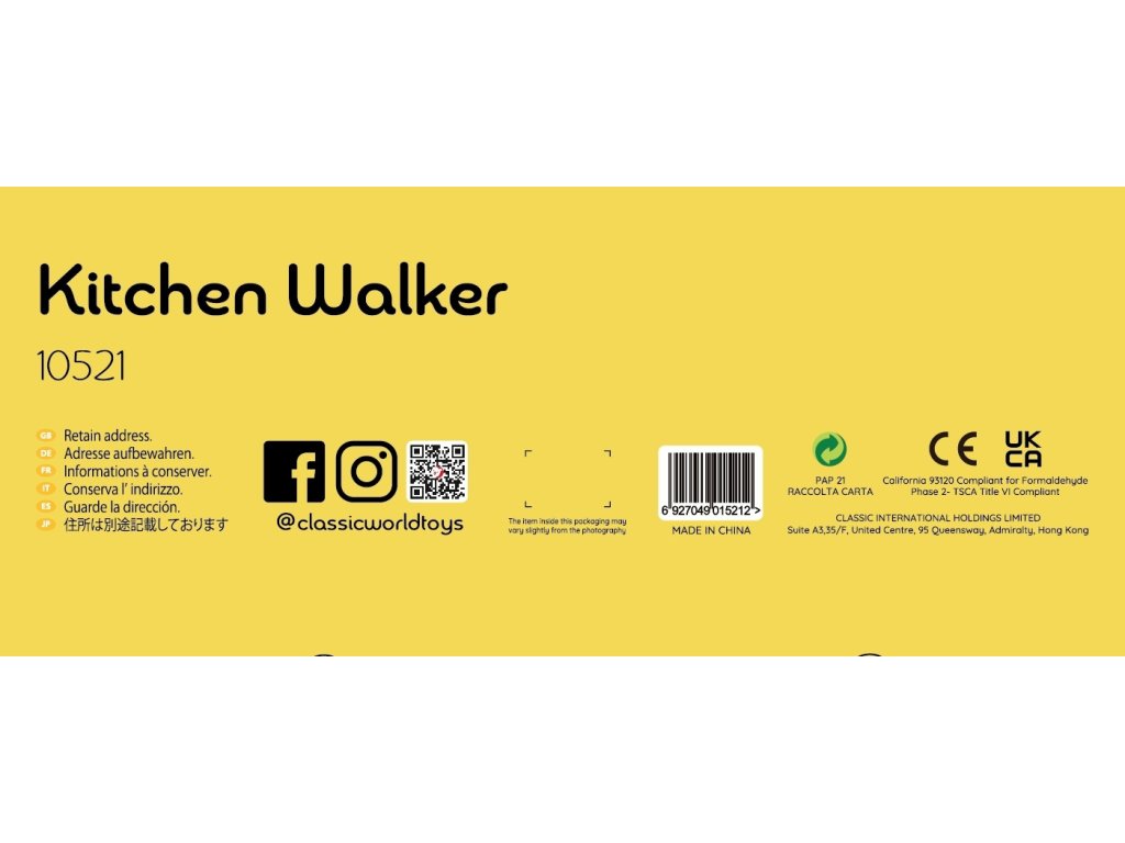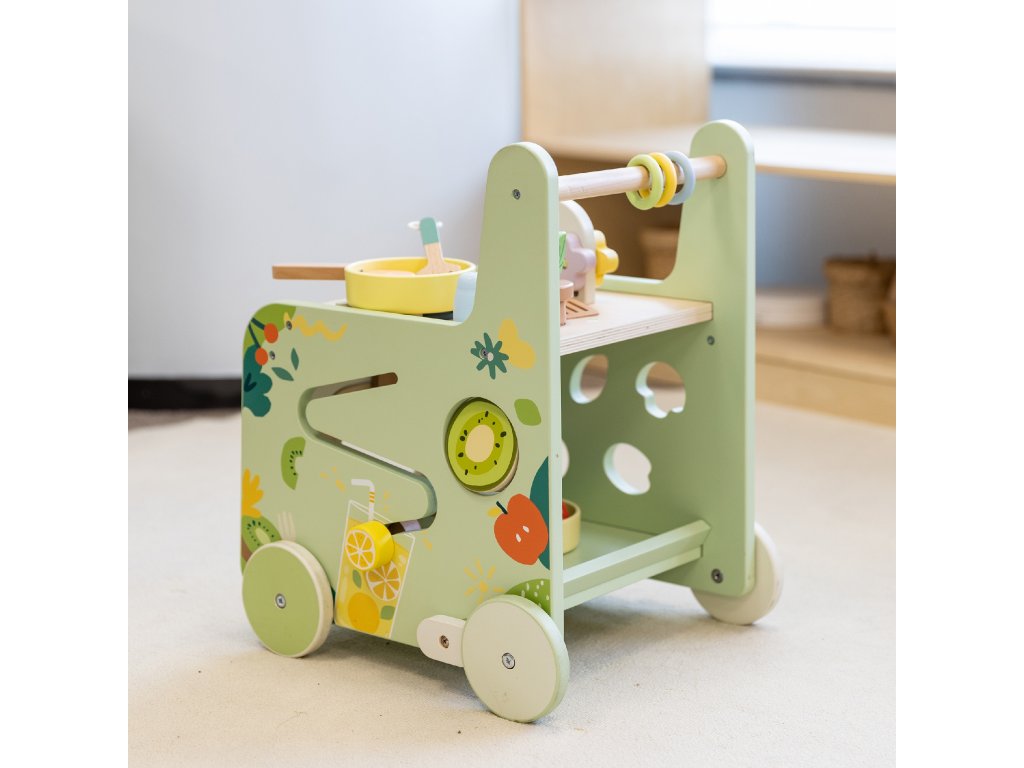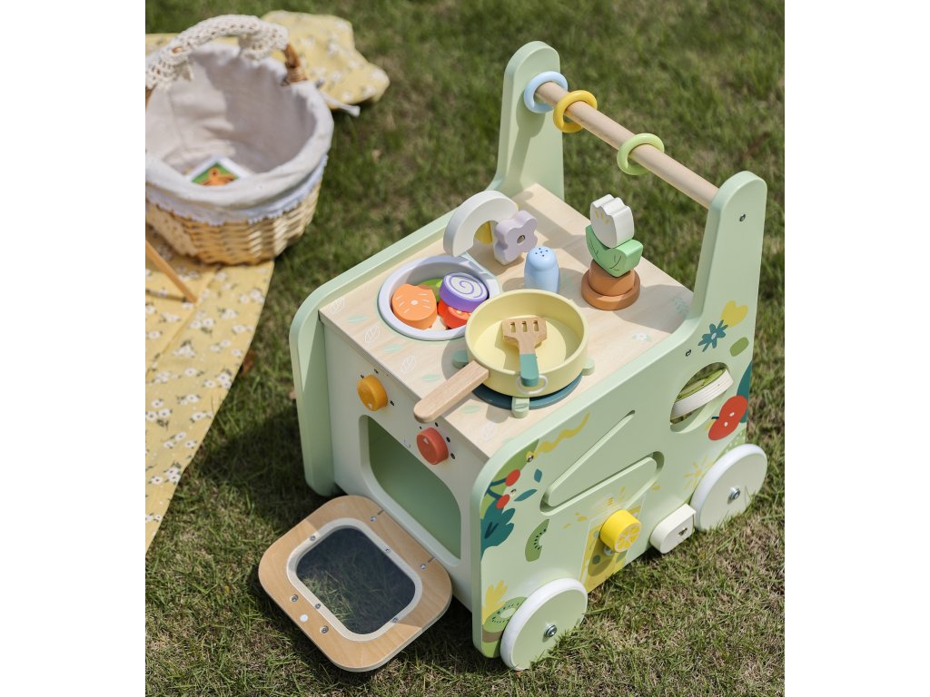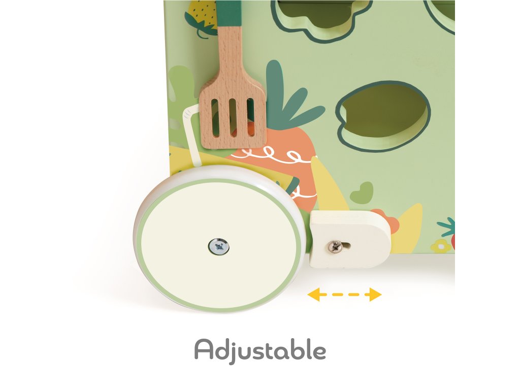 Drevený kuchynský tlačiak od značkyKlasický svet je ideálna hračka, ktorárastie spolu s vaším dieťatkom! Je to viac než len obyčajné chodítko, je to mobilná kuchynka plná rôznych aktivít, ktoré nielen podporujú učenie sa chodiť, ale aj rozvíjajú zmysly a manuálne zručnosti dieťaťa. Batoľatá sa môžu hrať na malých kuchárov, otáčať voličmi, smažiť na panvici a umývať zeleninu v dreze. Chodítko má stabilnú konštrukciu, ktorá poskytuje stabilnú oporu pri prvých krokoch a zároveň umožňuje dieťaťu bezpečne skúmať rôzne činnosti.