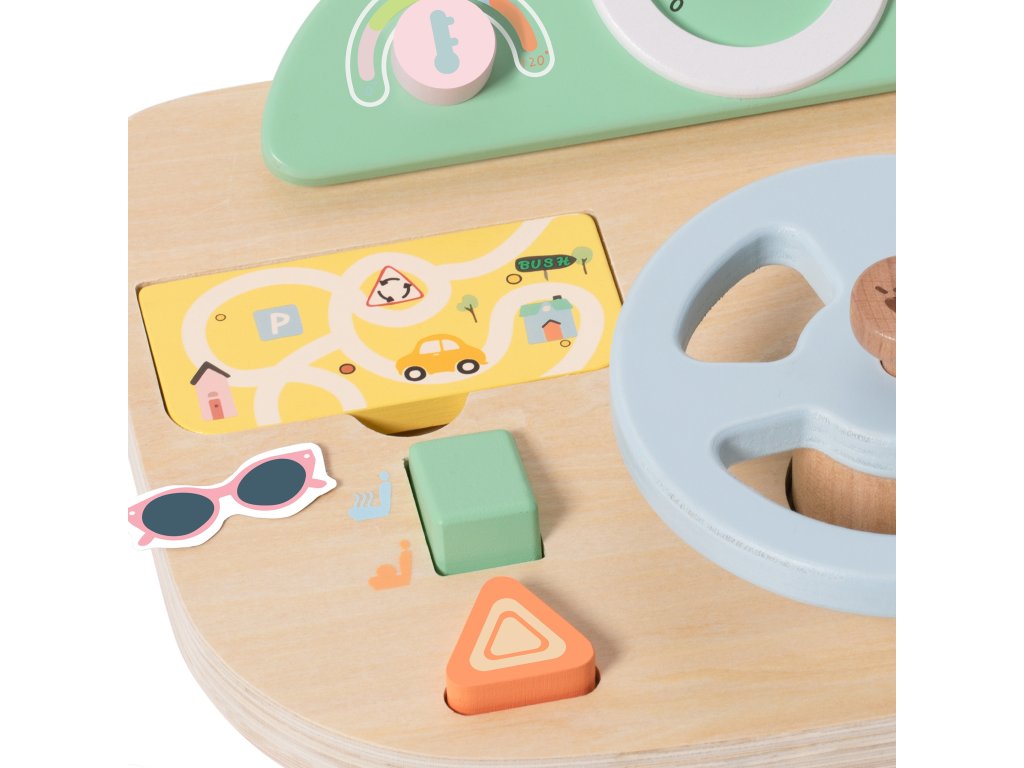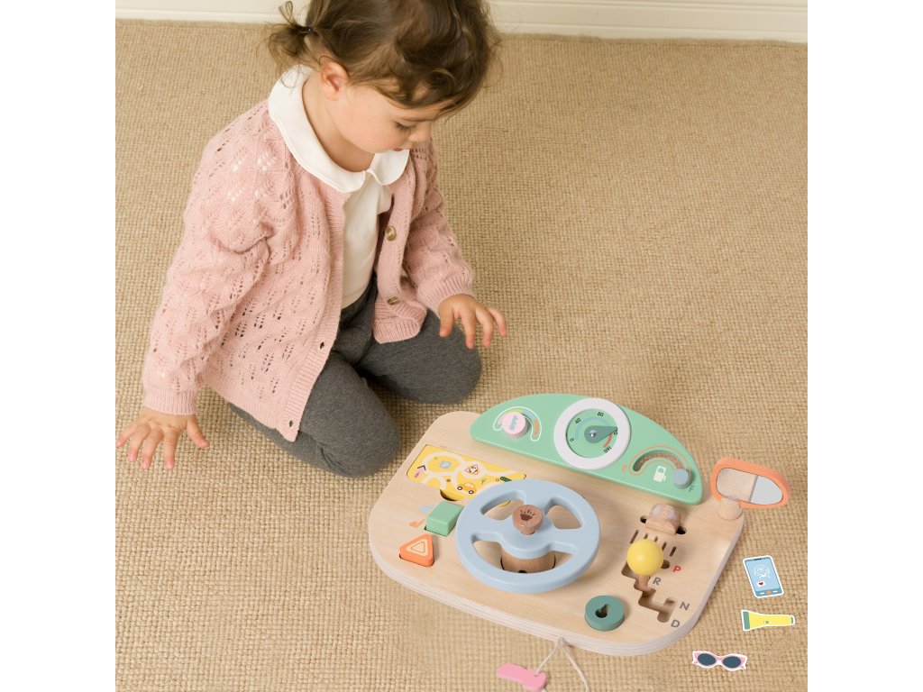 Drevená manipulačná doska v tvare volantu Klasický svet je tojedinečná hračka na precvičovanie manuálnych zručností, ktoré premenia každú miestnosť na miesto plné smiechu a tvorivej hry. Vďakarealistické prvky ako je prevodovka, ukazovateľ teploty, rýchlomer, pohyblivý volant so zvukovými efektmi, batoľatá sa môžu cítiť ako skutoční vodiči! Nielenže je to zábava na hranie, ale ajrozvíja detskú predstavivosť,motorické zručnostia logické myslenie.Pevná drevená konštrukcia vytvára panelbezpečné a odolnéy a početné farebné doplnky urobia každý výlet nezabudnuteľným.