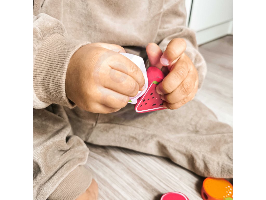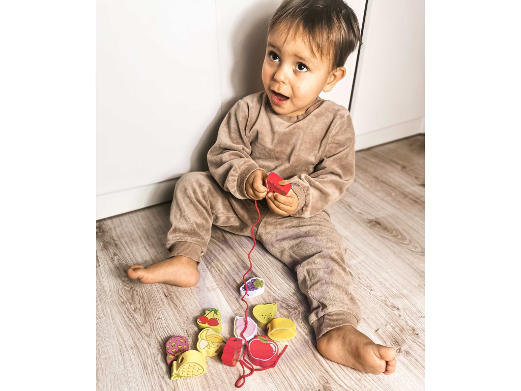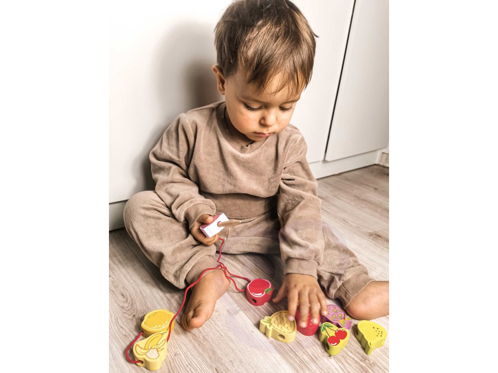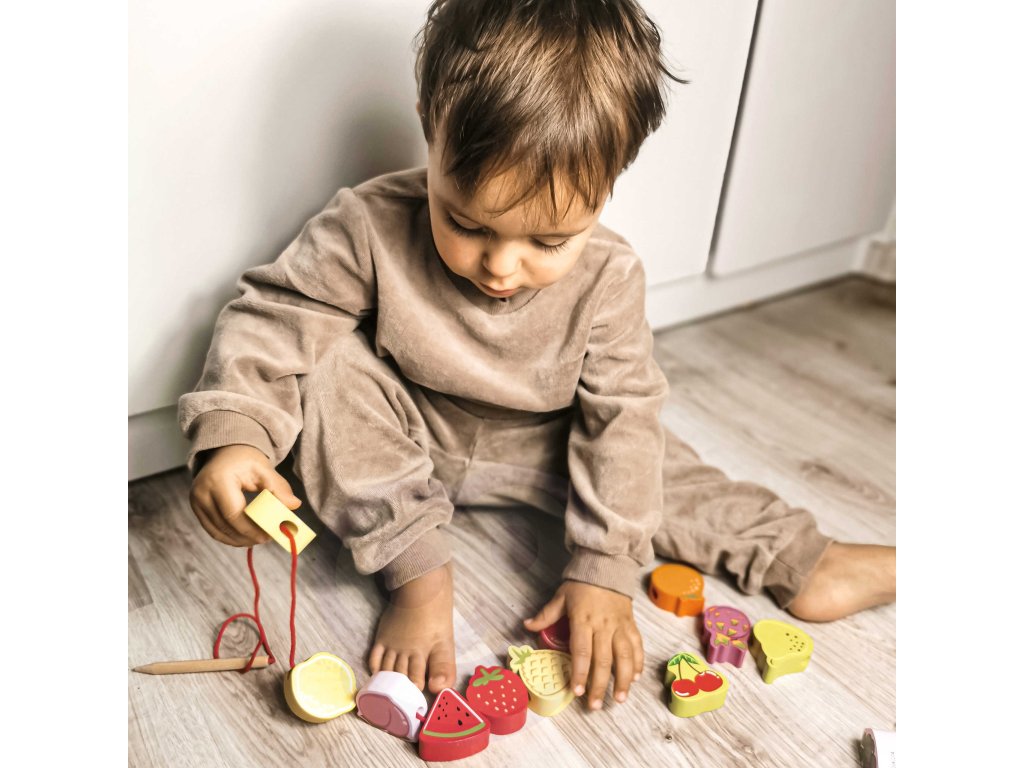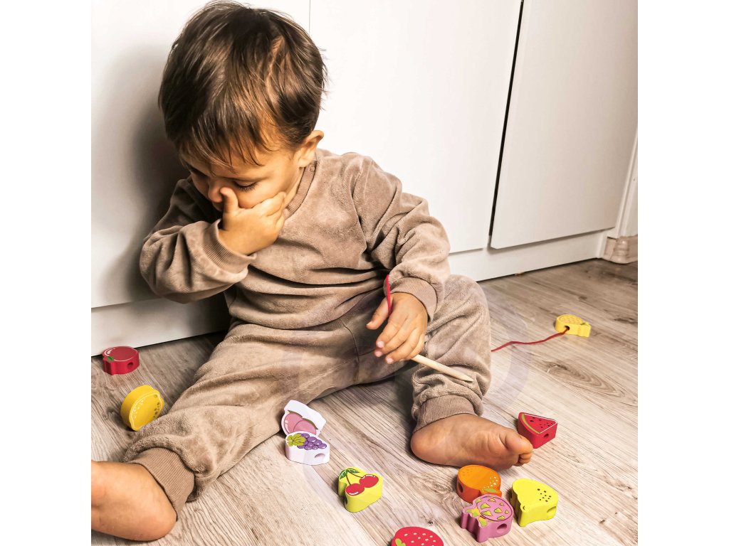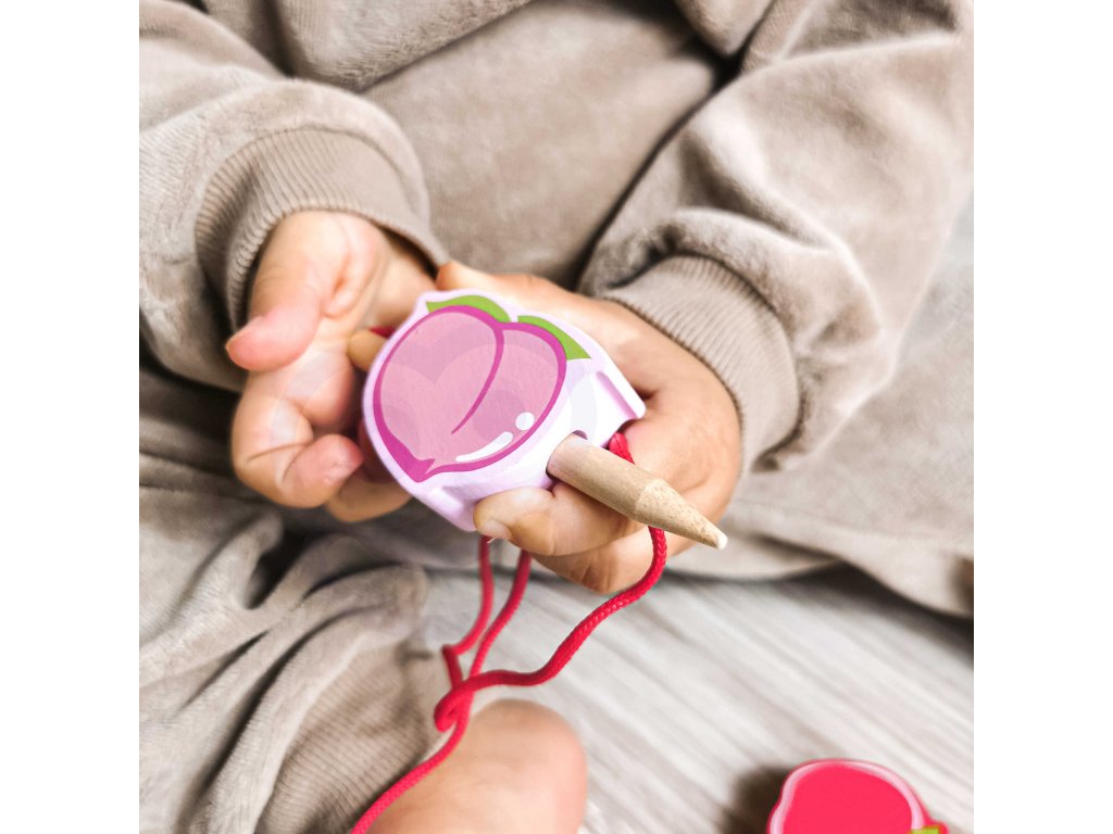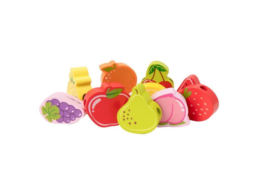 Drevený stroj na navliekanie nití s ovocím od renomovanej značkyKlasický svetje ideálna hračka pre vašich najmladších objaviteľov. Súprava sa skladá z12 drevených kociek v tvare ovocia,ktoré sú navlečené na šnúrke cez drevenú ihlu. Vďaka tejto hračke dieťarozvíja ich motorické zručnosti a obohacuje ich predstavivosť. Cieľom hračky je tiežnaučiť dieťa názvy ovocia a jeho farby.Súprava stimulujezvedavosť batoľaťa a poskytne mu hodiny zábavybloky môžete ľubovoľne rozmiestniť.