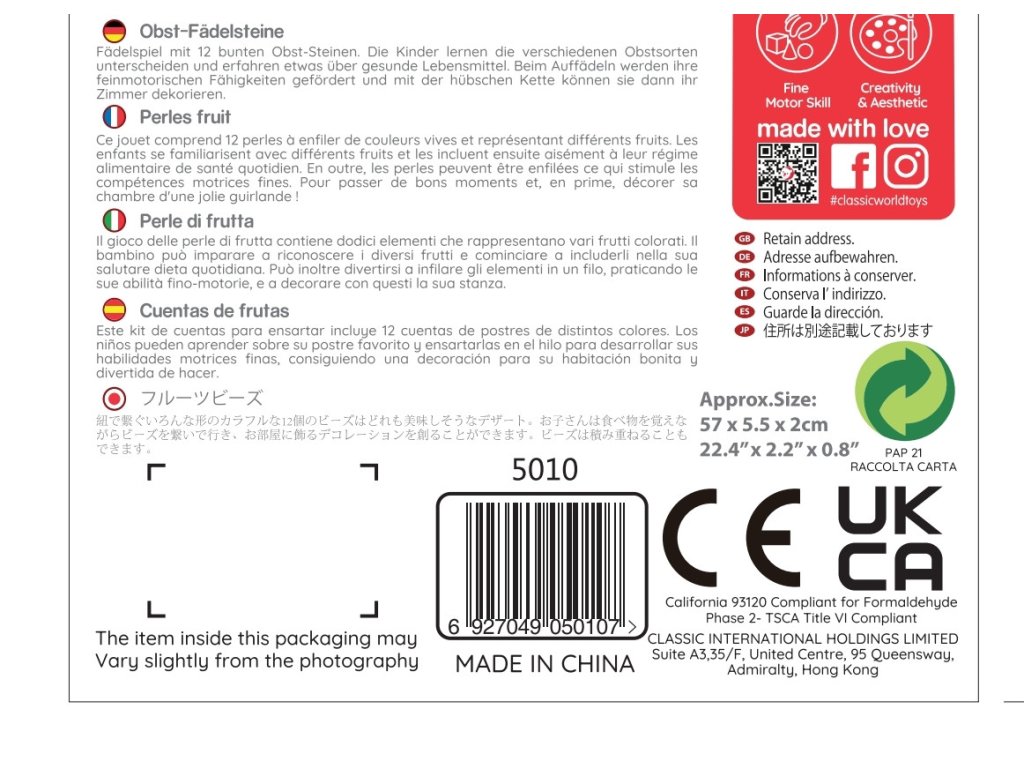 - - súprava obsahuje 12 drevených korálok v tvare ovocia v krásnych farbách,