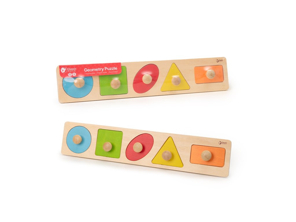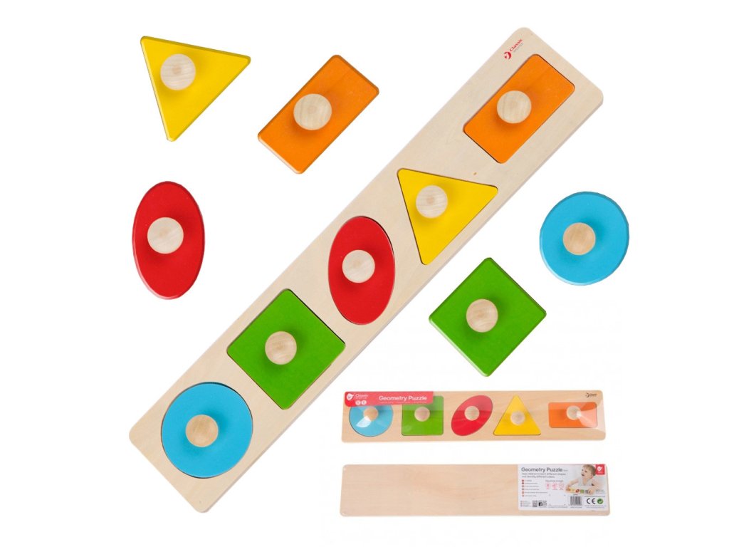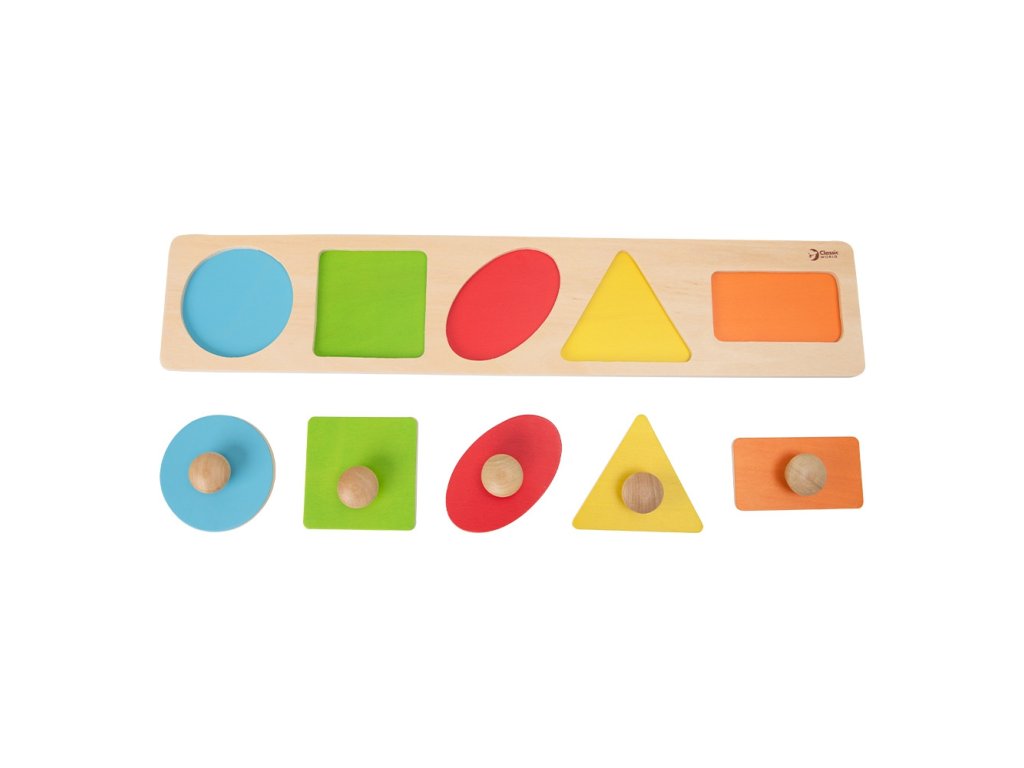 CLASSIC WORLD Drevené geometrické puzzle MONTESSORI Triedič tvarov Učenie farieb 6el.