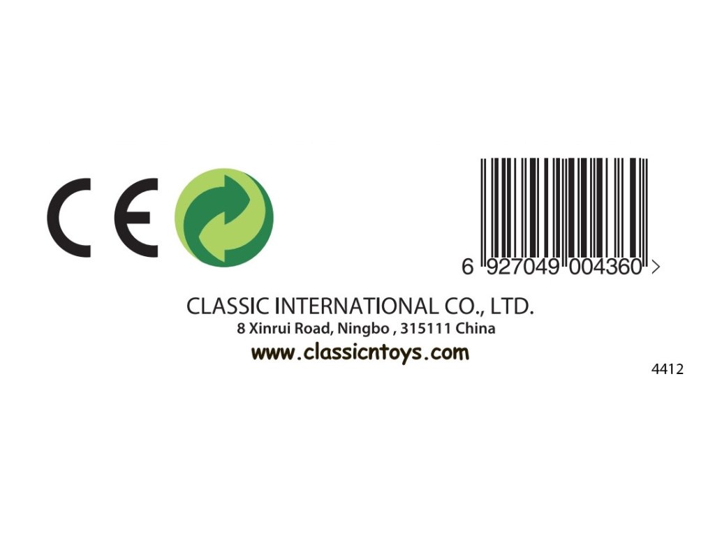 | GPSR: | Classic Toys (Ningbo) Co., Ltd. | No.8 Xinrui Road, Wuxiang Town Industry Park, Yinzhou District, Ningbo, Zhejiang, China | andy@classicntoys.com |