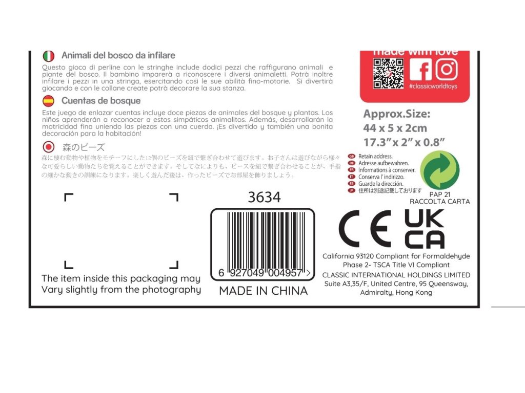 | GPSR: | Classic Toys (Ningbo) Co., Ltd. | No.8 Xinrui Road, Wuxiang Town Industry Park, Yinzhou District, Ningbo, Zhejiang, China | andy@classicntoys.com |