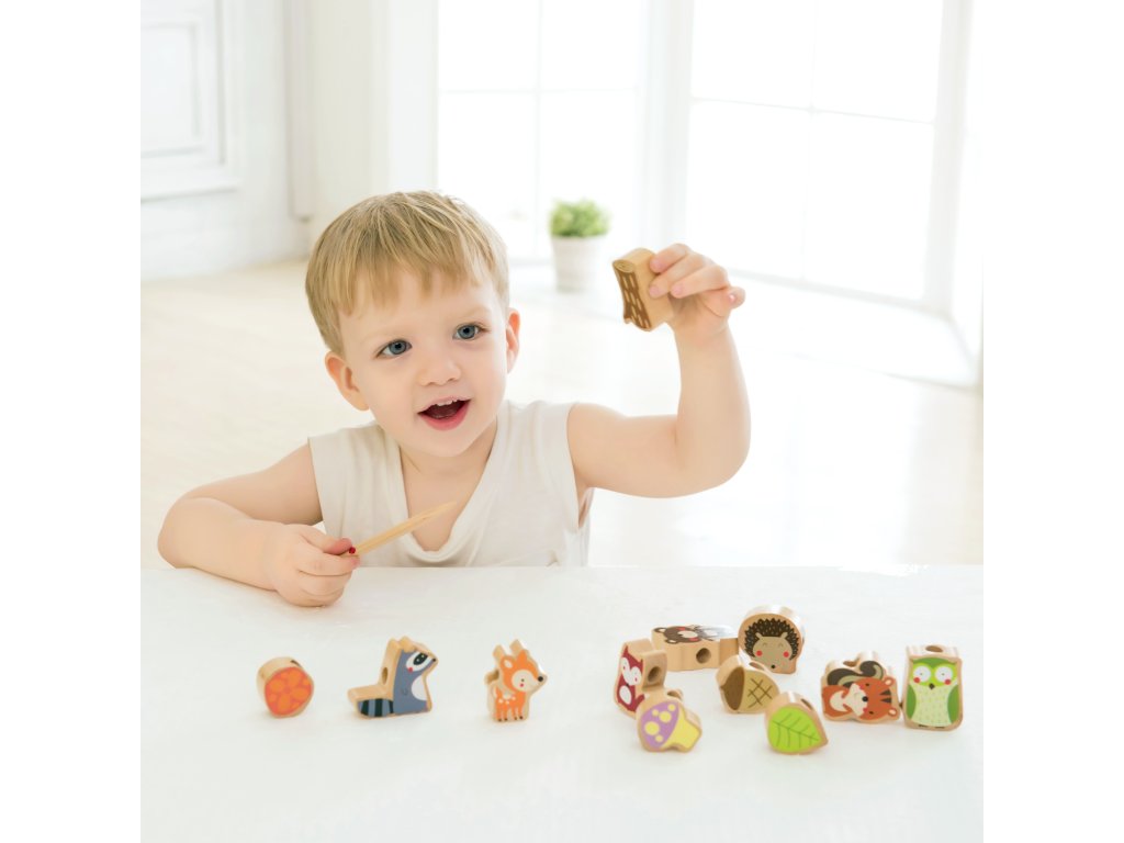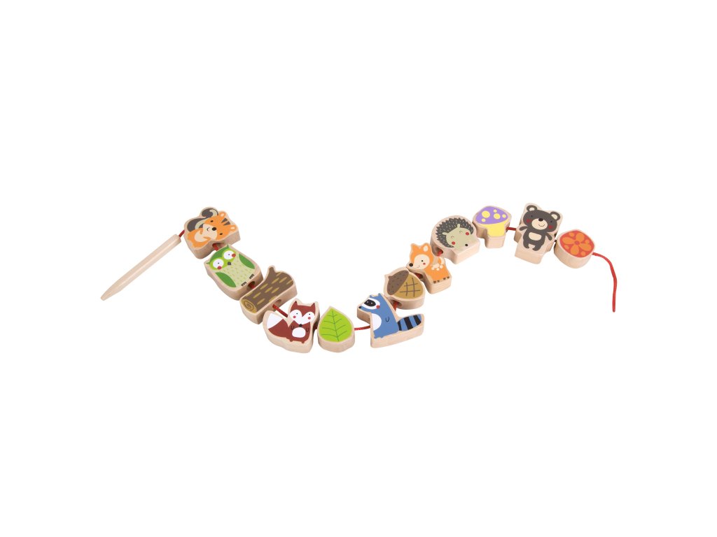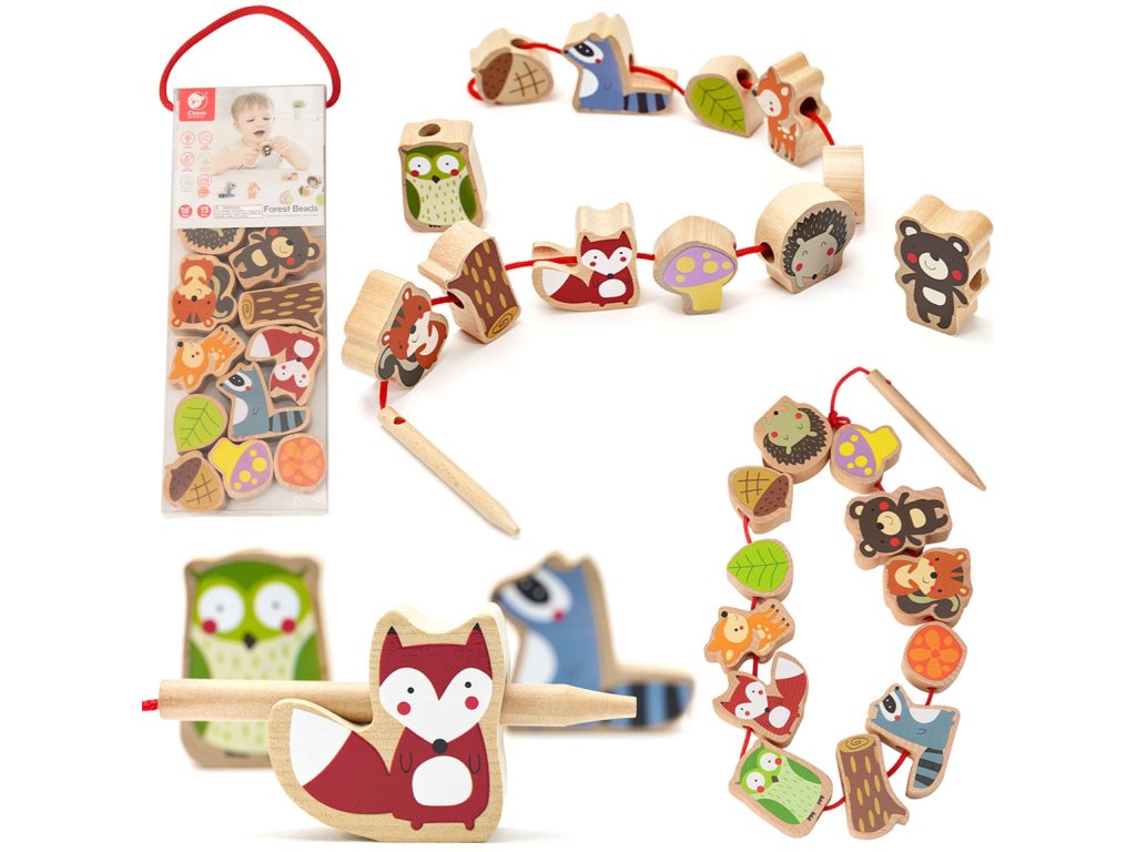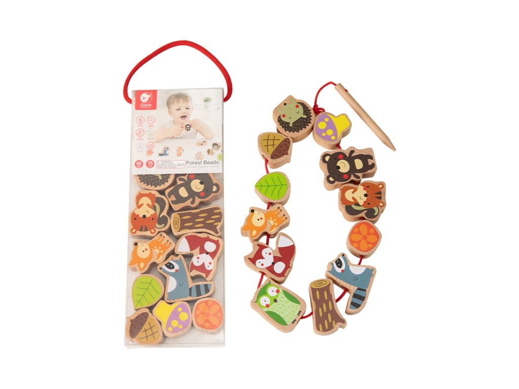 Klasické korálky na navliekanie lesných zvierat je ideálnou hračkou na rozvoj motorických schopností dieťaťa. Prekladanie pre deti Je zachovaná téma sveta lesných zvierat. Prepletená hračka od Klasický svet je klasická súprava drevených dielikov s otvormi, cez ktoré dieťa prepletá šnúrku. Je to skvelá zábava a rozvíja zručnosť a vzbudzuje zvedavosť dieťa o zvieratách, ktoré žijú v lese.