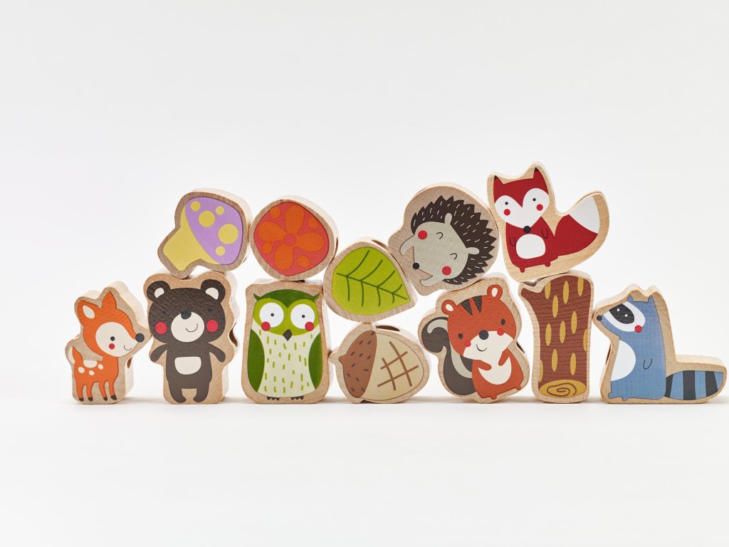 CLASSIC WORLD Drevené strunové bloky Lesné zvieratá 13 ks