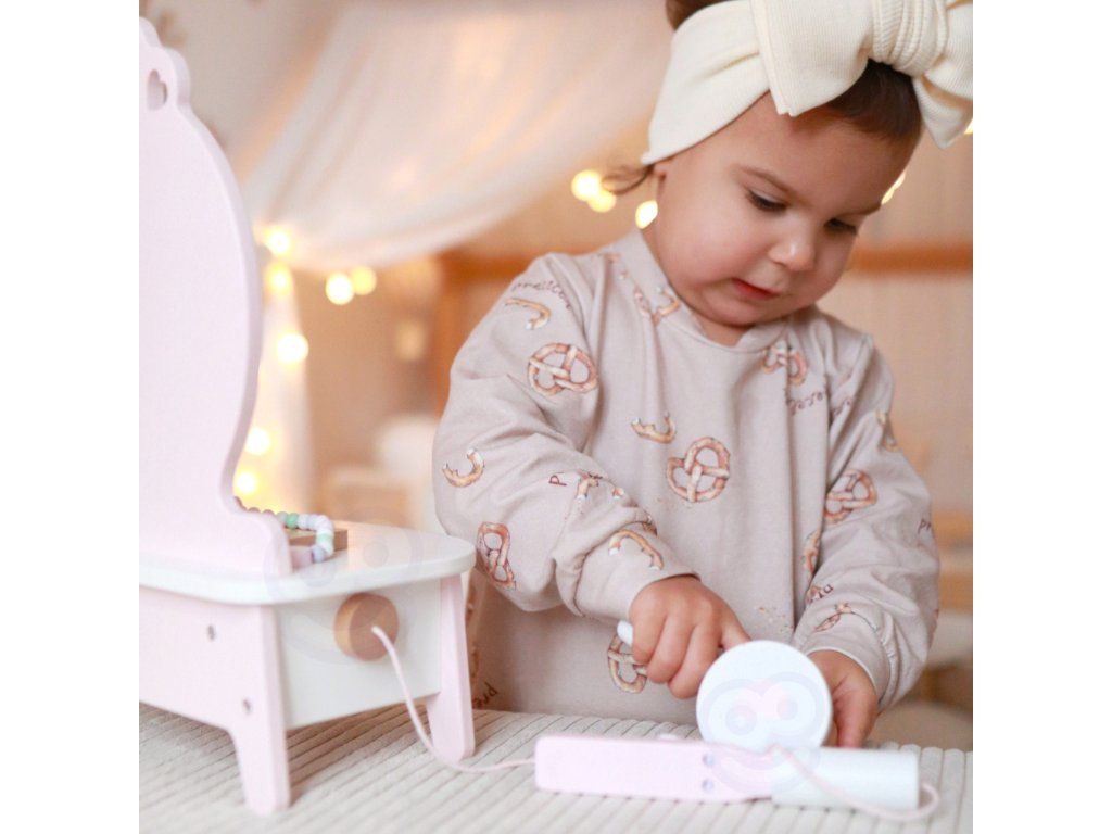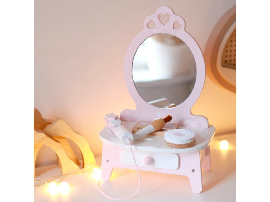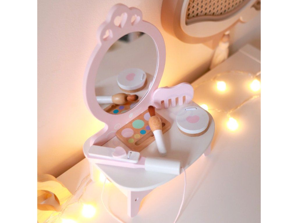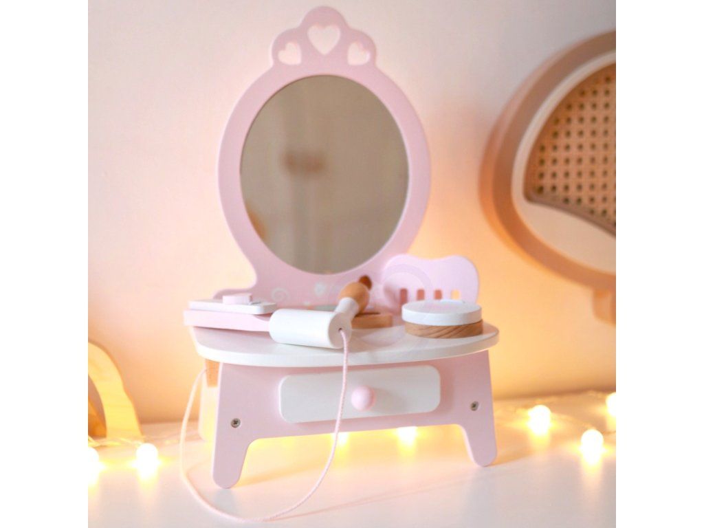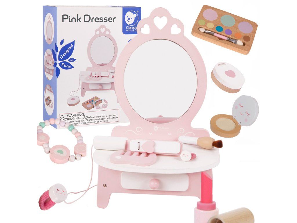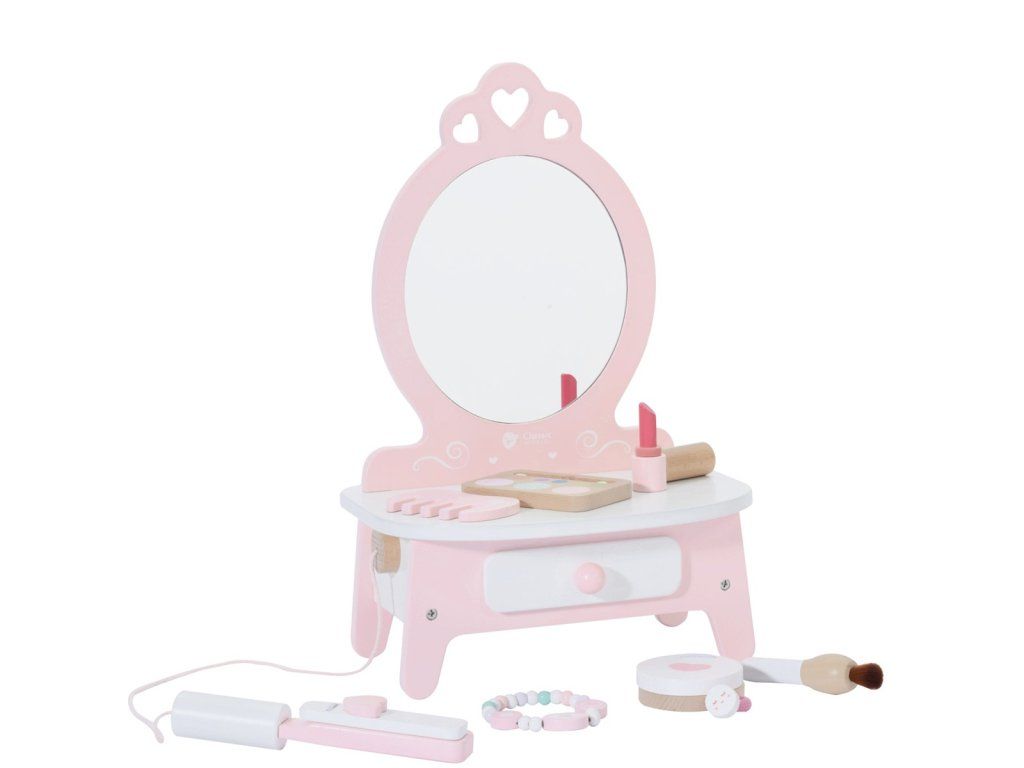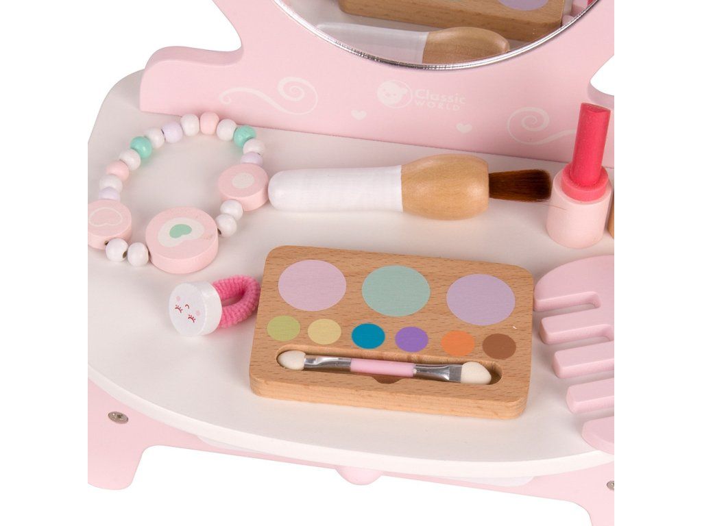 CLASSIC WORLD Drevený toaletný stolík pre dievčatá so zrkadlom + žehlička 11 acc