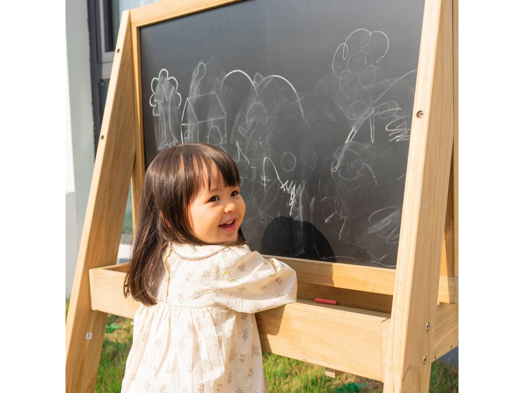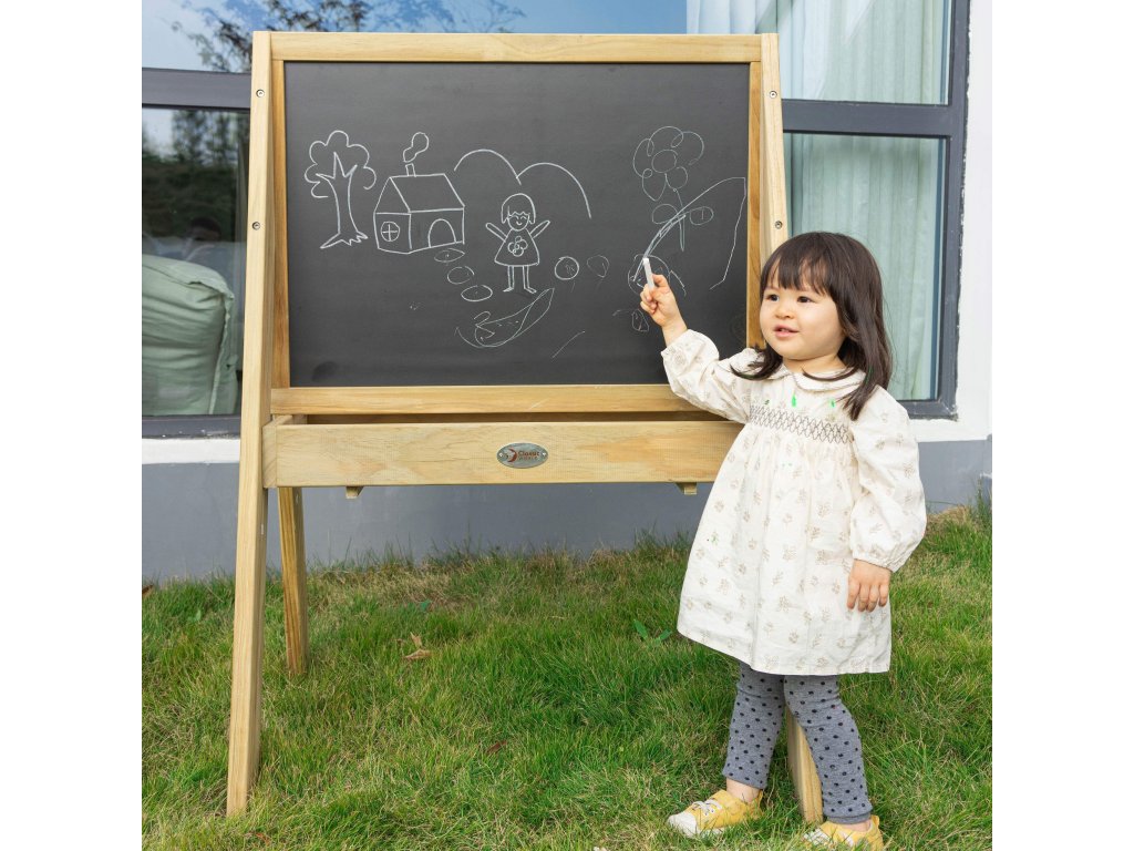 Drevená tabuľa od značkyCLASSIC WORLD je jedinečnou ponukou pre malých umelcov, ktorá sa bude dobre vynímať v detskej izbe aj vonku. Tento profesionálnyvzdelávacia rada bol navrhnutý na intenzívne používanie, takže je ideálnou voľbou nielen pre domácnosť, ale aj pre škôlky a detské ihriská. Je vyrobená z kvalitného dreva a vyznačuje sarobustná konštrukcia a estetické vyhotovenie. Veľká plocha na kreslenie kriedou umožňuje dieťaťu slobodné tvorivé vyjadrenie, učenie prvých písmen, číslic alebo vytváranie nádherných kresieb. Pod pracovnou plochou sa nachádzapraktická polica s otvormi, ktoré uľahčujú ukladanie kried, húb alebo prípadných pohárikov s farbami, čím sa zabezpečí poriadok počas hry. Je to skvelý nástroj na podporu manuálneho a intelektuálneho rozvoja vášho dieťaťa.