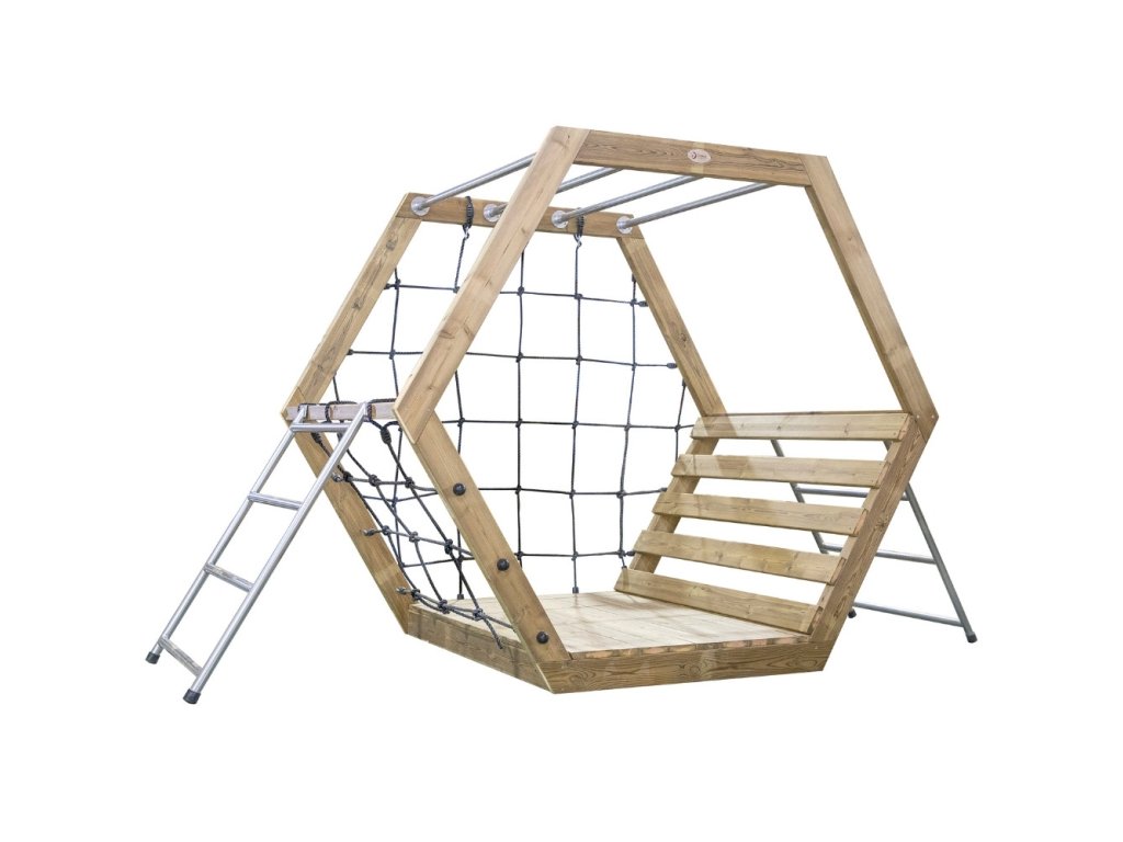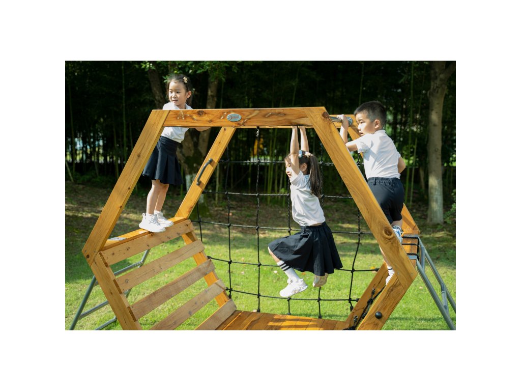 Jedinečný,šesťuholníkové ihrisko je ideálnym priestorom pre pohyb, skúmanie a rozvoj detskej kreativity. Vytvorený smasívne drevo a robustné kovové komponentykonštrukcia zaručuje bezpečnosť a odolnosť aj počas intenzívnej hry.