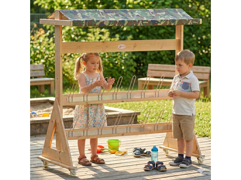 Drevený záhradný vešiak XXL od renomovanej značkyKlasický svet je dokonalým doplnkom každého detského ihriska, škôlky alebo záhrady! Vyrobené zimpregnované borovicové drevo, ktorý sa vyznačuje jedinečnýmodolnosť voči poveternostným vplyvomčo zaručuje dlhú životnosť a estetický vzhľad na dlhé roky. Vešiak je mimoriadne praktické organizačné riešenie -možno na ňu zavesiť gumenné čižmy, mackintoshe a ďalšie detské doplnky. Má štýlovýbaldachýn v štýle moro akolesánábytok možno ľahko premiestniť na akékoľvek vonkajšie miesto. Je to odolný výrobok z radu ekologických hračiek, vytvorený z prírodných a biologicky rozložiteľných materiálov, ktorý zaručuje pohodlie a poriadok.