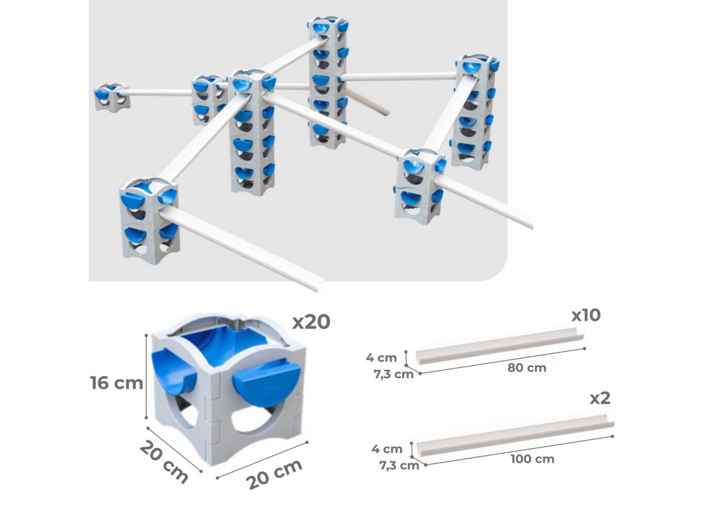 Rozmery výrobku: | Kocka - 20 x 20 x 16 (cm) / Trubka1 - 80 x 7,5 x 4 (cm) / Trubka2 - 100 x 7,5 x 4 (cm) |
