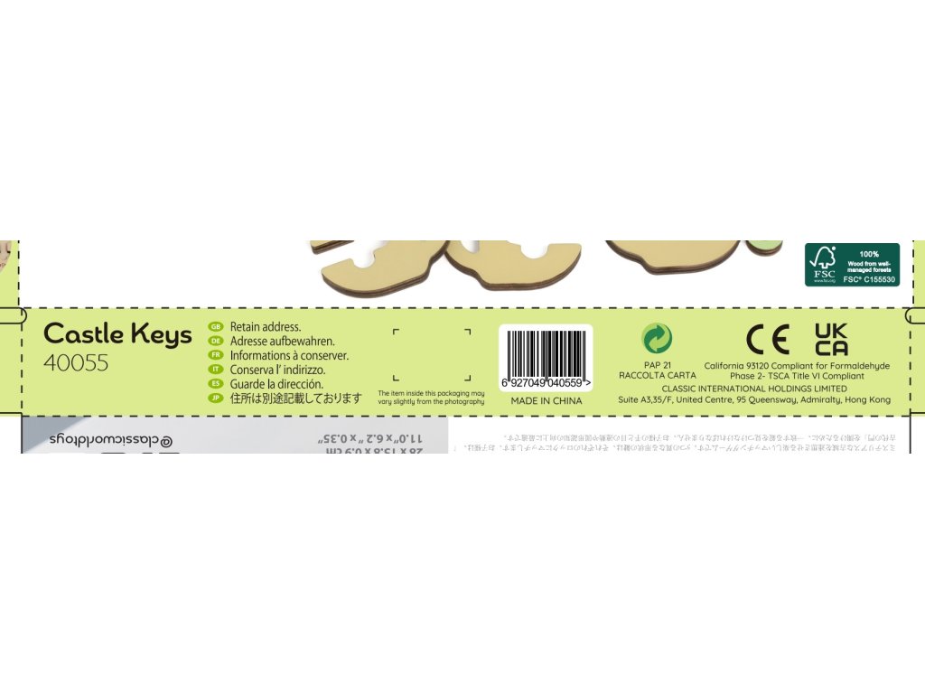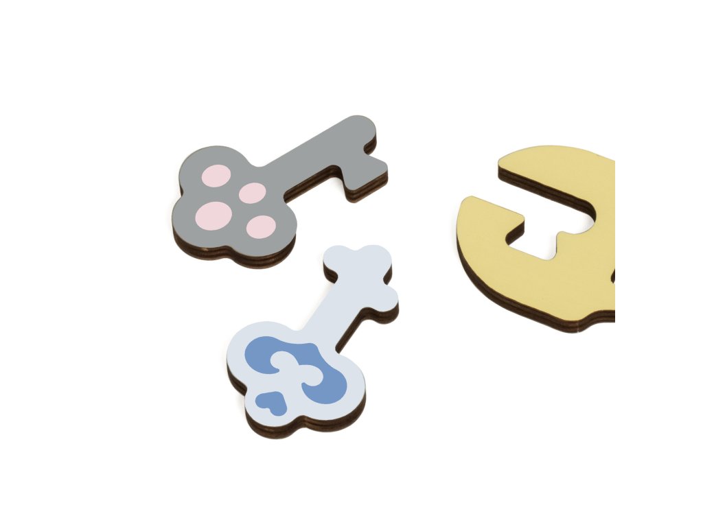 Drevený hrad s kľúčmiod značkyKLASICKÝ SVETje zmyslová skladačka pre batoľa. Hra zahŕňa priraďovaniepäť jedinečných kľúčovpre zodpovedajúce zámky, kľúče môžu byť tiež uložené na doske, ktorá má miesto pre každý kľúč. Vynikajúce pre koordinácia rúk a očímalé deti a grafické poznávanie.