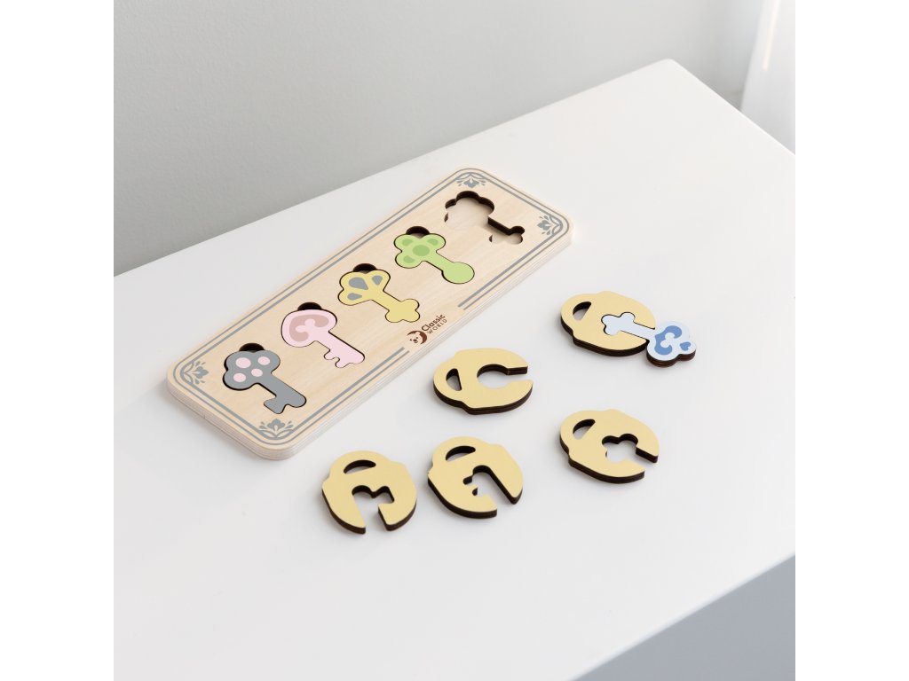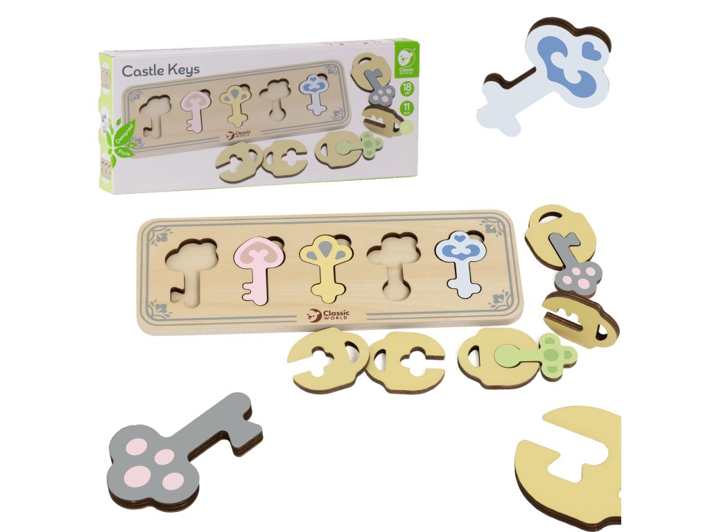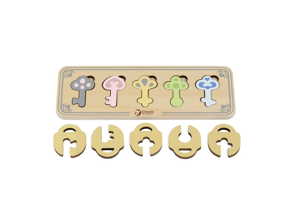 CLASSIC WORLD Montessori senzorické drevené puzzle zodpovedajúce kľúčom a zámkom