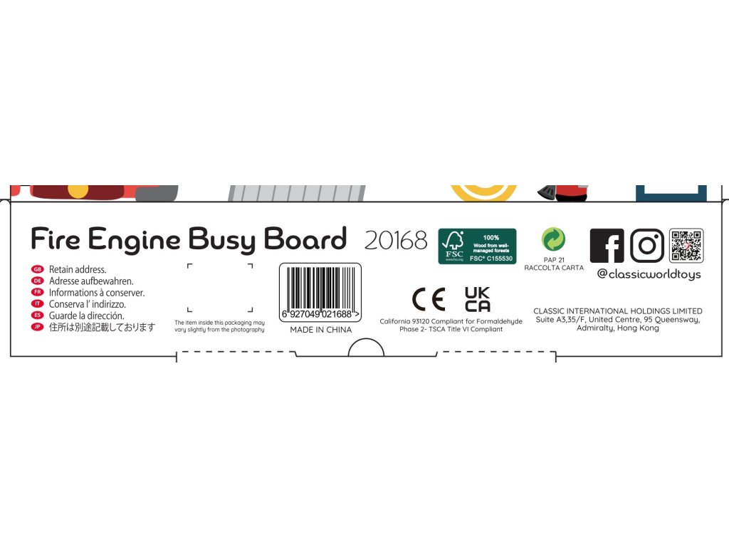 Manipulačná doska 6v1 od značkyKLASICKÝ SVET je ideálnou hračkou pre deti. Doska obsahujeotvorenie dverí, korálky/slučky,rotujúce ja koleso,rebrík,zvon agombík ktoré udržia pozornosť vášho batoľaťa celé hodiny. Deti milujú hasičov, takže hračka sa im bude obzvlášť páčiť.Zaujímavé vzhľad iveľa prvky stimuluje predstavivosť ikreativita dieťa,bude rozvíjať tiežkapacity manuál akoordinácia batoľa.