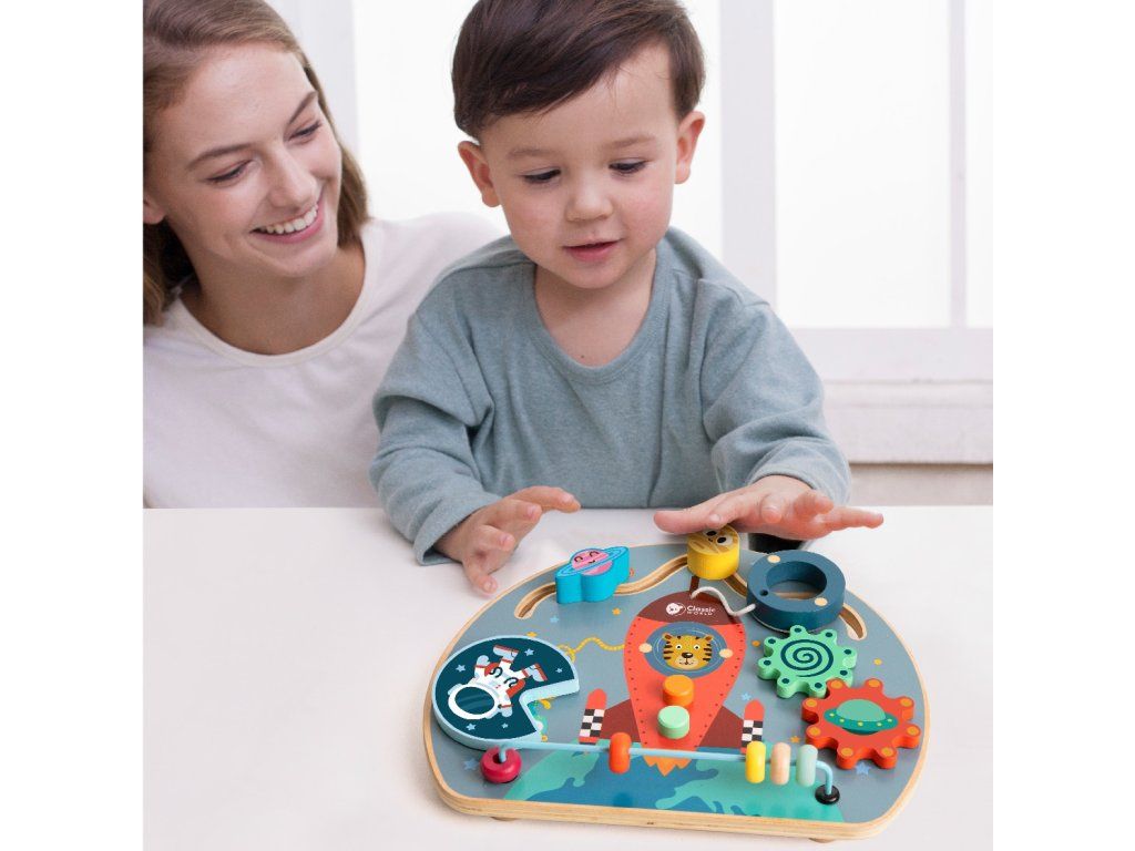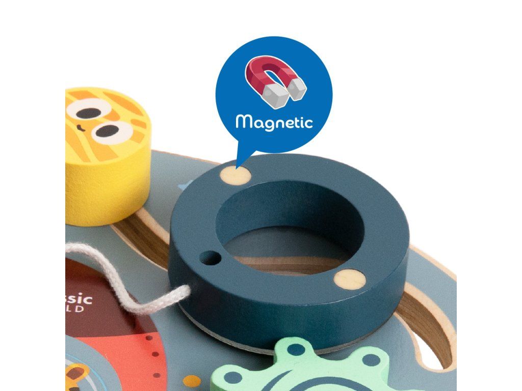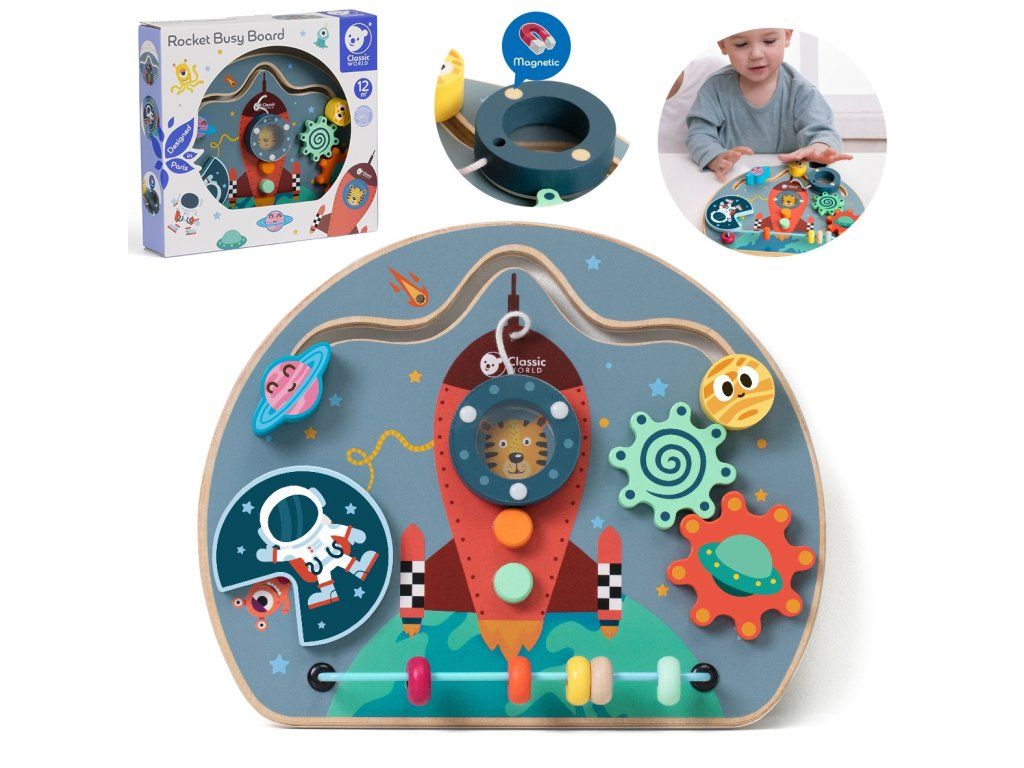 Jedinečné doskamanipulatívny 6v1 od značkyKlasický svetktorý kombinuje funkcievzdelávacie izmyslové v jednom kompaktnom výrobku. Vyrobené zvysoká kvalita dreva a natreté netoxickýmfarby, poskytujezabezpečenie itrvanlivosť. Vďakašesť rôznych činnosti, dieťavyvíja jehomanuálne zručnosti ikognitívne prostredníctvom hry. Ideálne pre batoľatáod 12. mesiaca života, je vynikajúcivýber darčekov. Je určený na všestranný rozvoj dieťaťa a spája vzdelávanie s radosťou z objavovania.