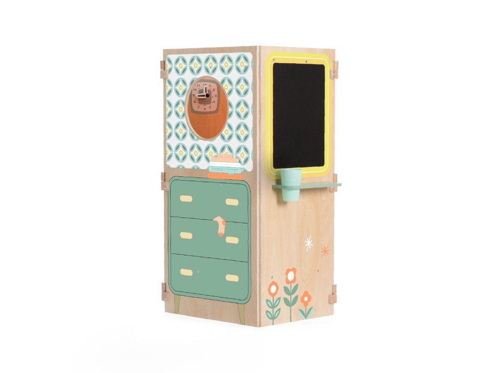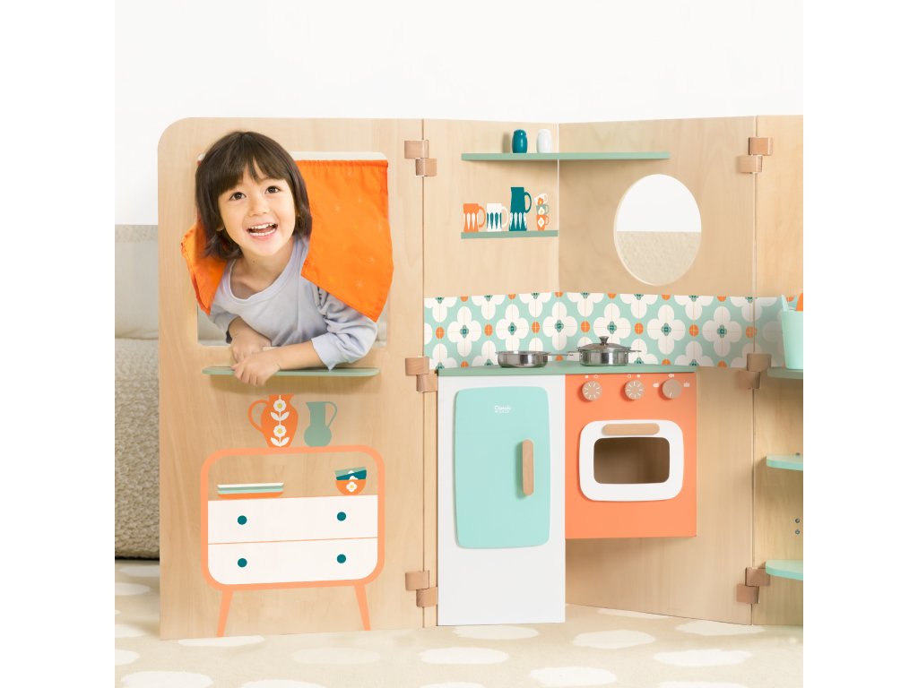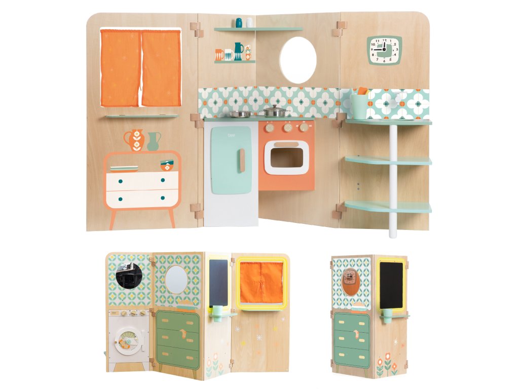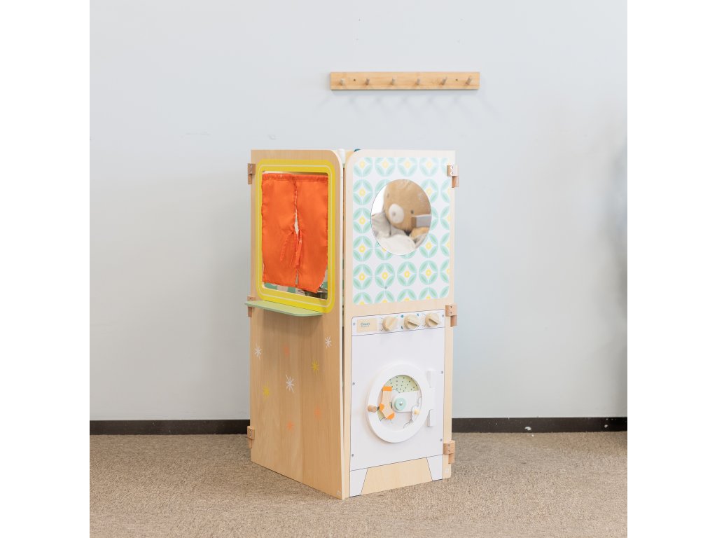 Multifunkčnéskladacia chatka od značkyKLASICKÝ SVETponúka nekonečné možnosti hry. Odhaľuje rôzne priestory na hranie, ako naprkuchyňa, ako ajpráčovňa s práčkou,magnetická tabuľa iokno. Môže sa používať aj akobábkové divadlo. Deti sa môžu hrať "vonku" a "vnútri" pri pohľade cez okno. Skladací domček jeveľmi kompaktný a vďaka dobrému systému otvárania a skladania nezaberá veľa miesta.