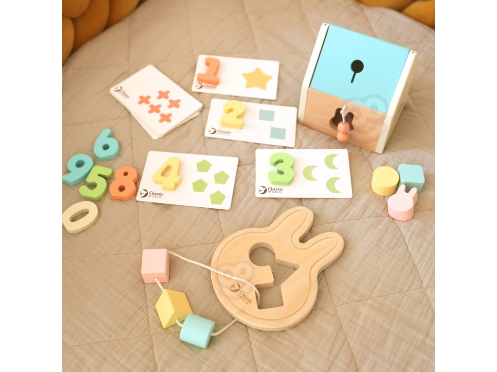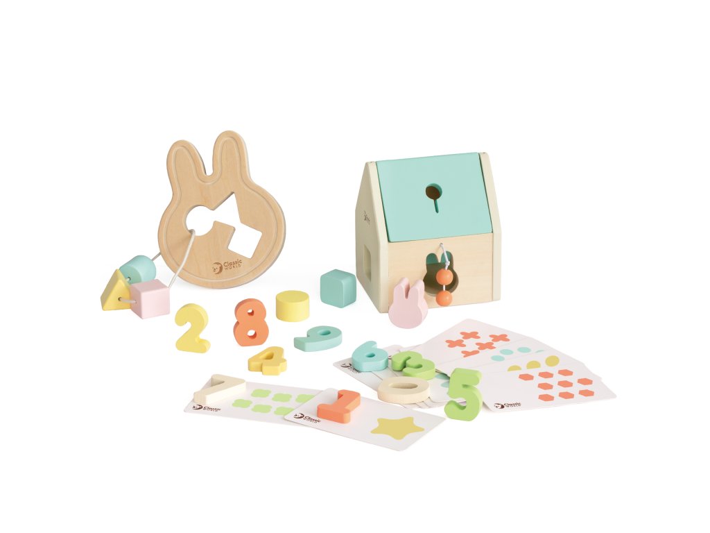 CLASSIC WORLD Pastelový detský box Set prvé učebné hračky od 12 do 18 mesiacov